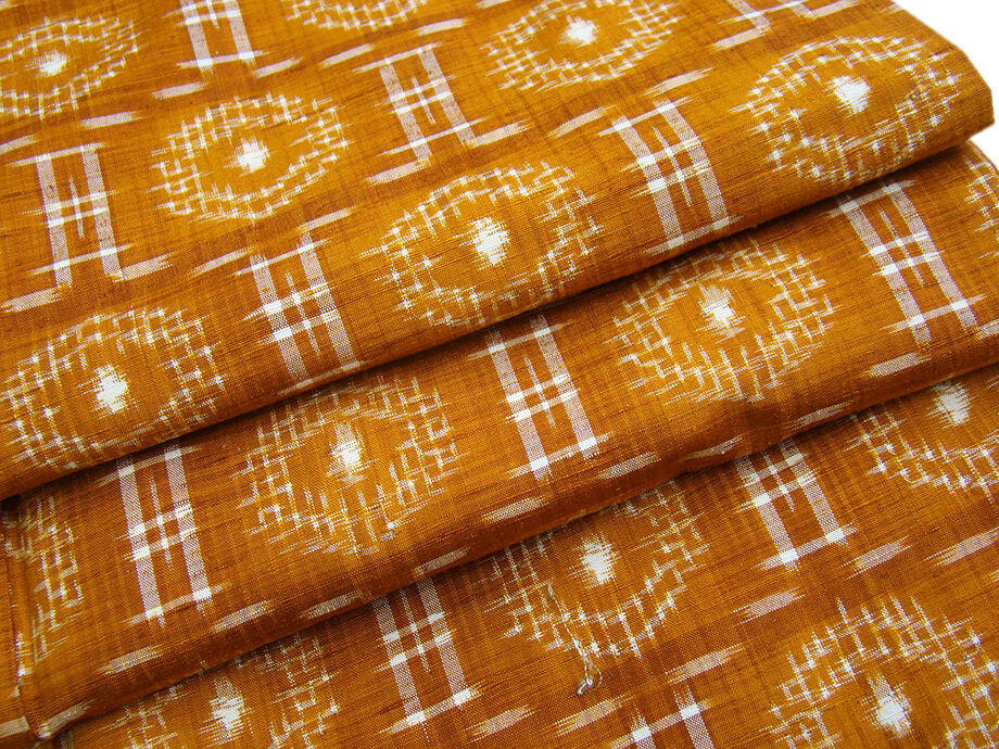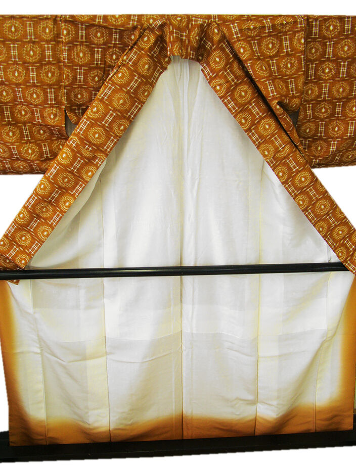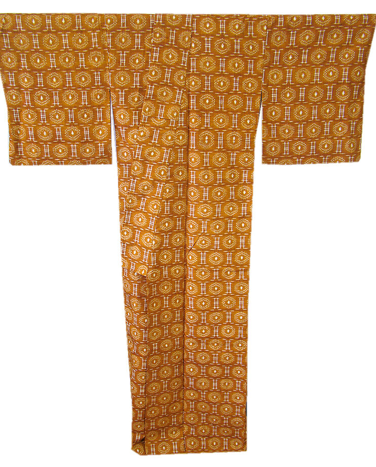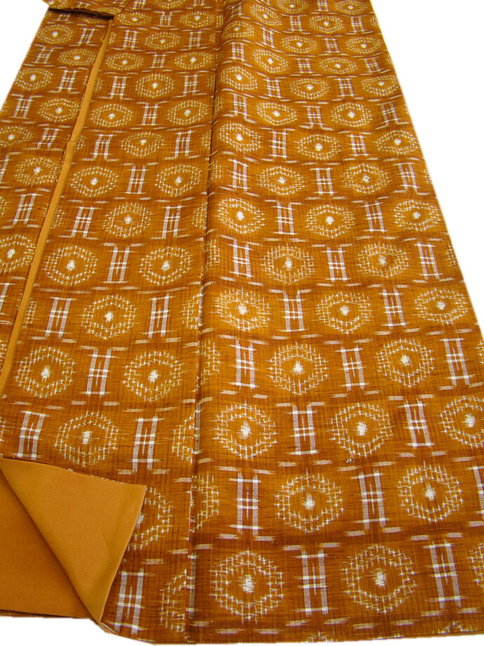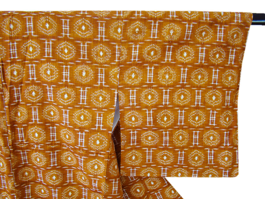| 商品説明 | こちらのお品は「袷」ですので10月から5月までお召頂ければと思います。 海に囲まれ、豊かな自然のなかで育まれた素朴で温もりを感じさせる その風合いが着物通の方々の心を魅了する、沖縄県伝統工芸品の「琉球絣」です。 しなやかな手触りの中にさらりとして心地良いハリのあるその独特の風合。 シャキッとした素材感はサラッとした着心地が魅力的の伝統工芸品の琉球絣。 シワになりにくく、日中のお出かけにも気兼ねなくお召し頂けます。 明るい土色地に白色の織柄、 落ち着いた雰囲気を醸すシックな色彩を基調に、一面にシンプルな絣を織り成しました。 民芸的でありながらも都会の街並みにもピッタリと調和する小粋な仕上がりとなっております。 八掛は江戸茶色(正絹)、幅広い年代の方にお召頂けます、 残念ながら証紙・残布はございませんが手触りや織等から琉球絣だと思われます。 |