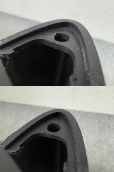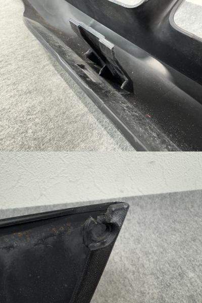 上部のクリップ穴にヒビ割れが2箇所あります。(画像9) 下部ステーの根本に割れが1箇所あります。(画像10上) 左フチのクリップ穴にヒビ割れが1箇所あります。(画像10下) その他の取付部に破損はありません。 〇車両情報 ・車種 MCCスマート ・車体番号 WME4503352J052537 | ||||
