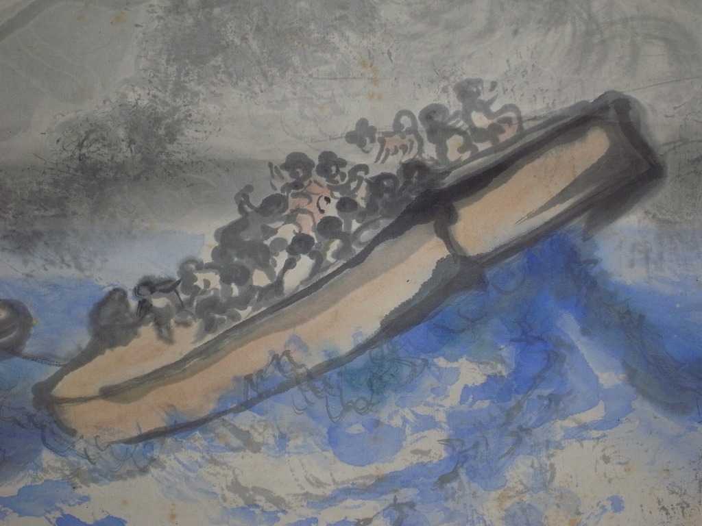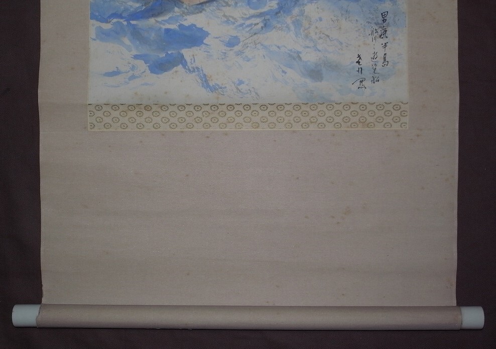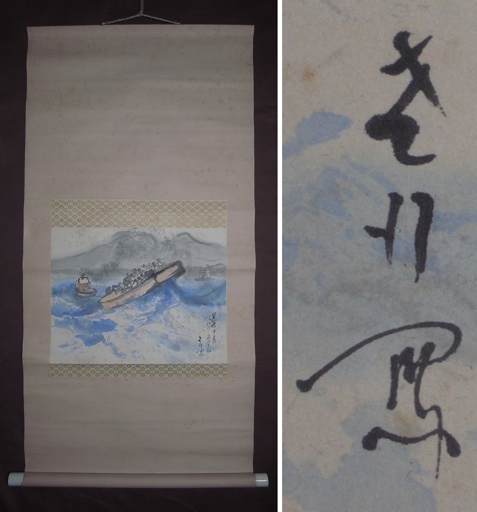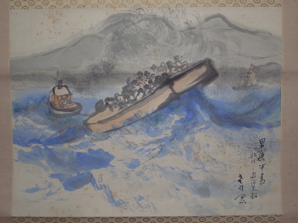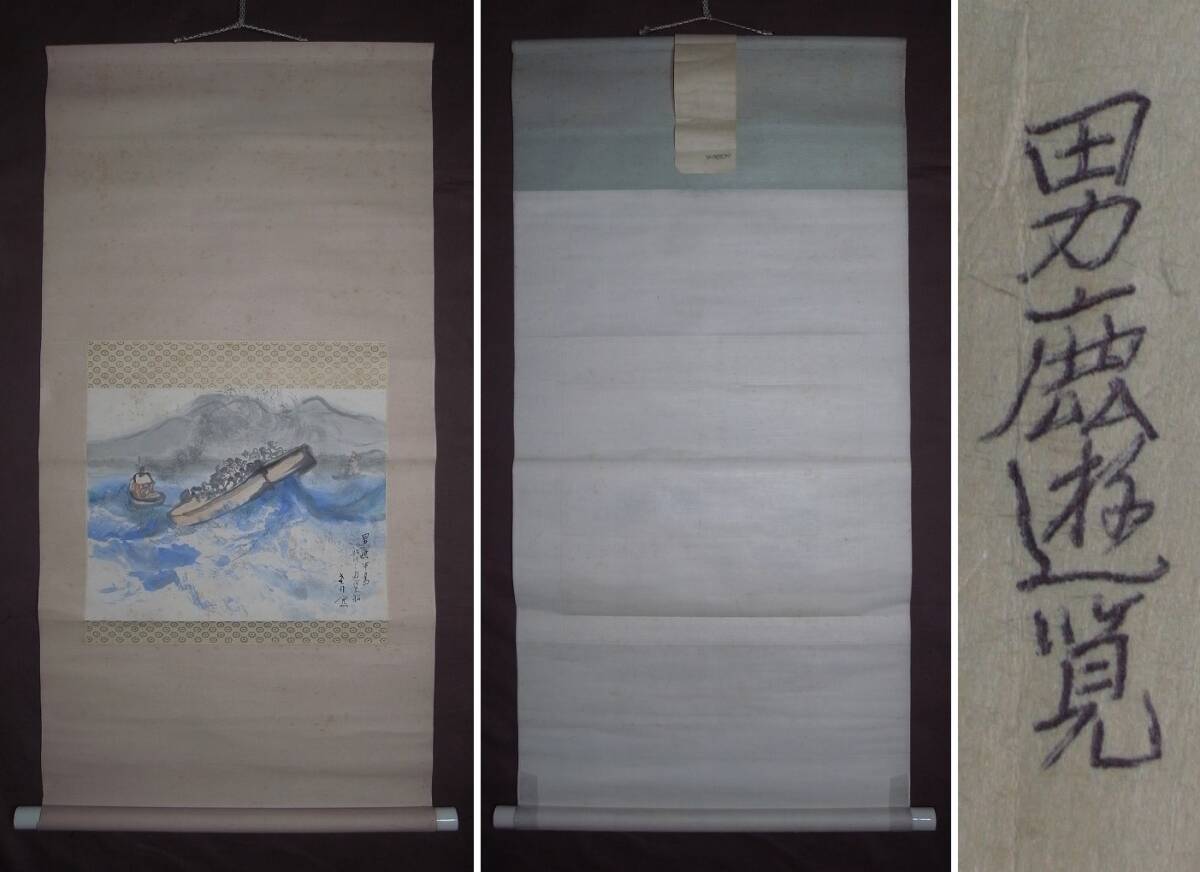 ◇出品物紹介作者不詳『男鹿半島 船川之遊覧船』掛軸〔紙本肉筆〕木箱入り でございます。