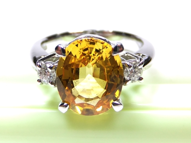 Pt 900 プラチナ製 上品な イエロー サファイア リング シンプル デザイン、大人 クラシカル フォルム。 【サファイア】 ・サファイアは「誠実」や「仁徳」の象徴。 ・「上品さ」と「知的さ」を演出、西欧では、知識人・聖職者に好まれている宝石。 ・9月 の誕生石 ・おとめ座(8/24~9/23)の星座石 ・みずがめ座(1/21~2/19)の星座石 ・結婚5周年 の記念日宝石 ■ご自分や大切な方の誕生石や星座石を着けていると 幸運パワーが得られる、お守り・守護宝石と言われています。 ◆詳細◆ ・使用宝石 /イエローサファイア(オーバルカット)2.93 ct(刻印有り)約 縦 9.5 ㎜×横 8.0 ㎜ ・使用宝石/ダイヤモンド(ラウンドカット)0.15 ct(刻印有り)約 2.5 ㎜ 2石 ・リング 上部 サイズ / 約 幅 9.6 ㎜ 横 12.7 ㎜ 厚み 5.5 ㎜ ・リング 下部 サイズ / 約 幅 3.0 ㎜ 厚み 1.6 ㎜ ・金属素材 / Pt プラチナ 900 (Pt900の刻印有り) ・指輪のサイズ / 10号(サイズ直し対応) ・指のサイズがわからない場合は、指サイズばかりゲージを無料貸し出し致します。 ・サイズ直し代金は別途必要の為、かんたん決済は見積もり連絡後にお願い致します。 ・総重量 / 約 6.9 g ・付属品 / 専用ケース ・鑑別保証書(写真付き) | |