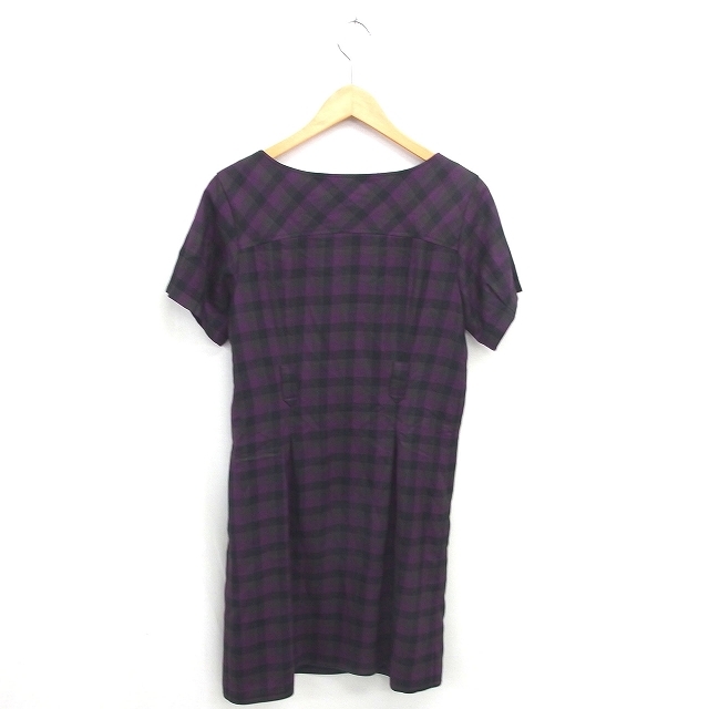 23区 オンワード樫山 ワンピース ミモレ丈 ロング チェック ボートネック プルオーバー 半袖 38 パープル ブラック 紫 黒 /TT レディース