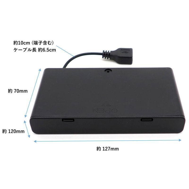 ●サイズ (電池ボックス) 約127 × 70 × 20mm (USBケーブル) 約10cm (端子含む) ケーブル長 約6.5cm