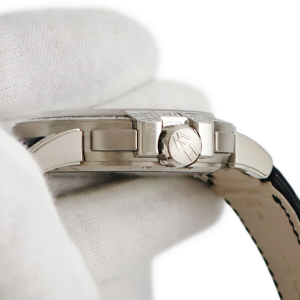 | 素材 | K18WG / 純正クロコバンド / 純正K18WG無垢製バックル / 純正ダイヤモンド / 純正カーボンファイバー文字盤 | |