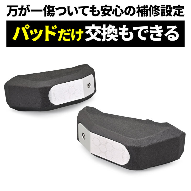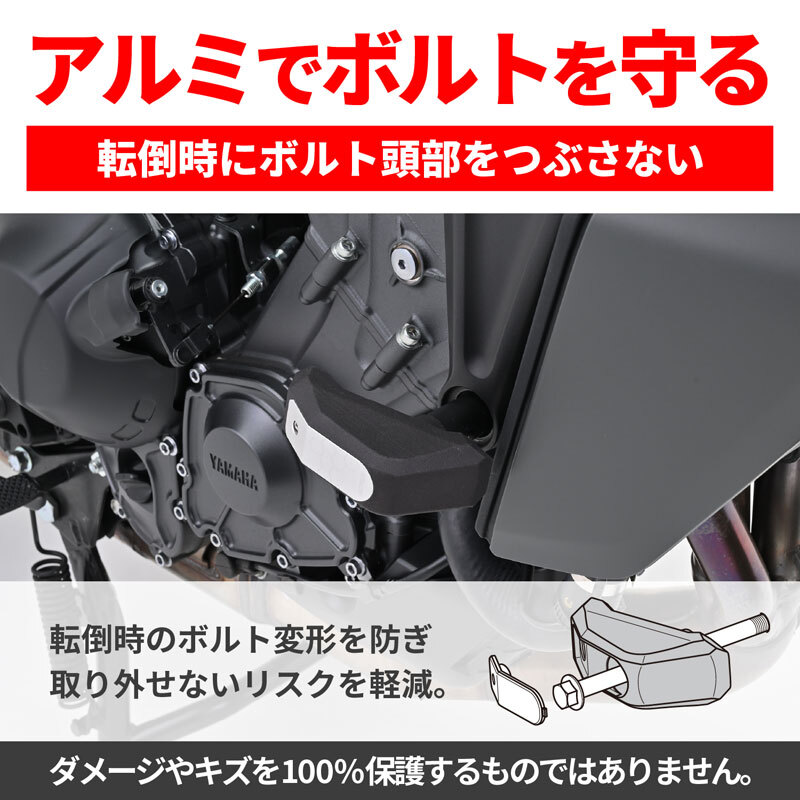 | ●樹脂製パッドが転倒時のダメージを吸収し、マシンへのダメージを緩和。 ●流線形パッドとアルミプレートの組み合わせで機能とドレスアップ効果を両立します。 ■適合車種 TRACER9 GT/Y-AMT('21~'25) XSR900('25) ■仕様 ・スライダー本体:PA66GF15 / スペーサー:アルミ(ブラックアルマイト)/ ボルト:スチール ※本商品は軽度の転倒時における、エンジンや車体へのダメージを軽減する目的の商品となります。転倒時のキズやカウル類の割れなどを保護するものではございません。また転倒時の状況によっては、未装着時よりダメージが大きくなる場合やダメージを軽減できない場合もございます。あらかじめご了承ください。 ※本商品の本体は、一定以上の衝撃を受けると、衝撃を緩和するために本体が破損(ボルト固定部周辺)するよう設計されております。破損した場合は新しいスライダーに交換してください。 ※デイトナ社パイプエンジンガードとの同時装着はできません。 ※取り寄せ品 |