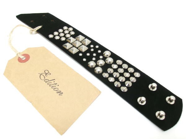 | ◆Edition(エディション) スタッズ ハラコブレスレット新品です。 実寸サイズ 全長:24.5cm 幅:3.9cm ・着用サイズ 18.5cm ※すべて平置きにして採寸しております。 採寸は参考程度とさせていただきます。 カラー ブラック系 素材 ハラコ 牛革 |