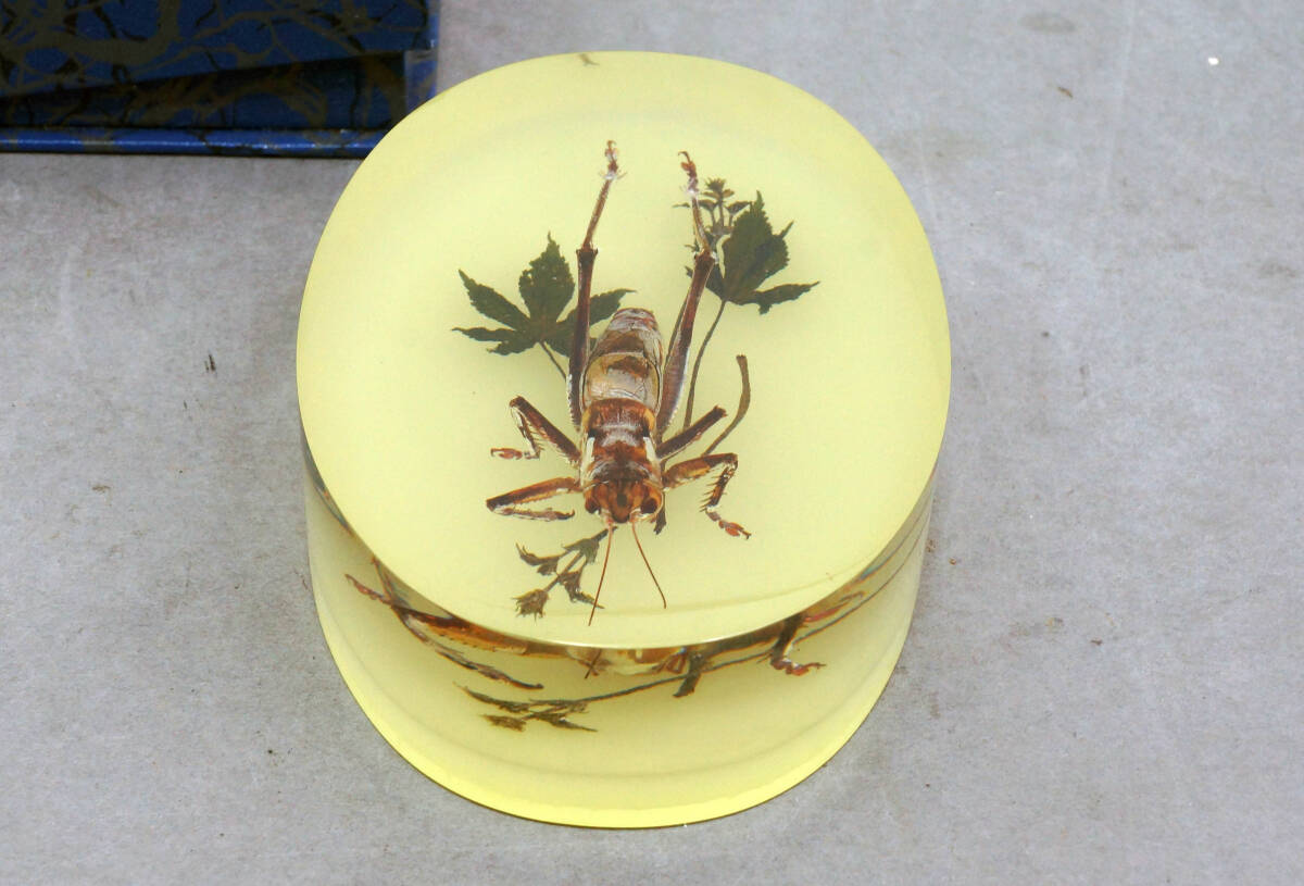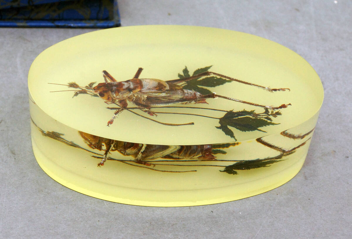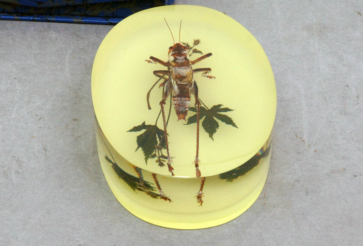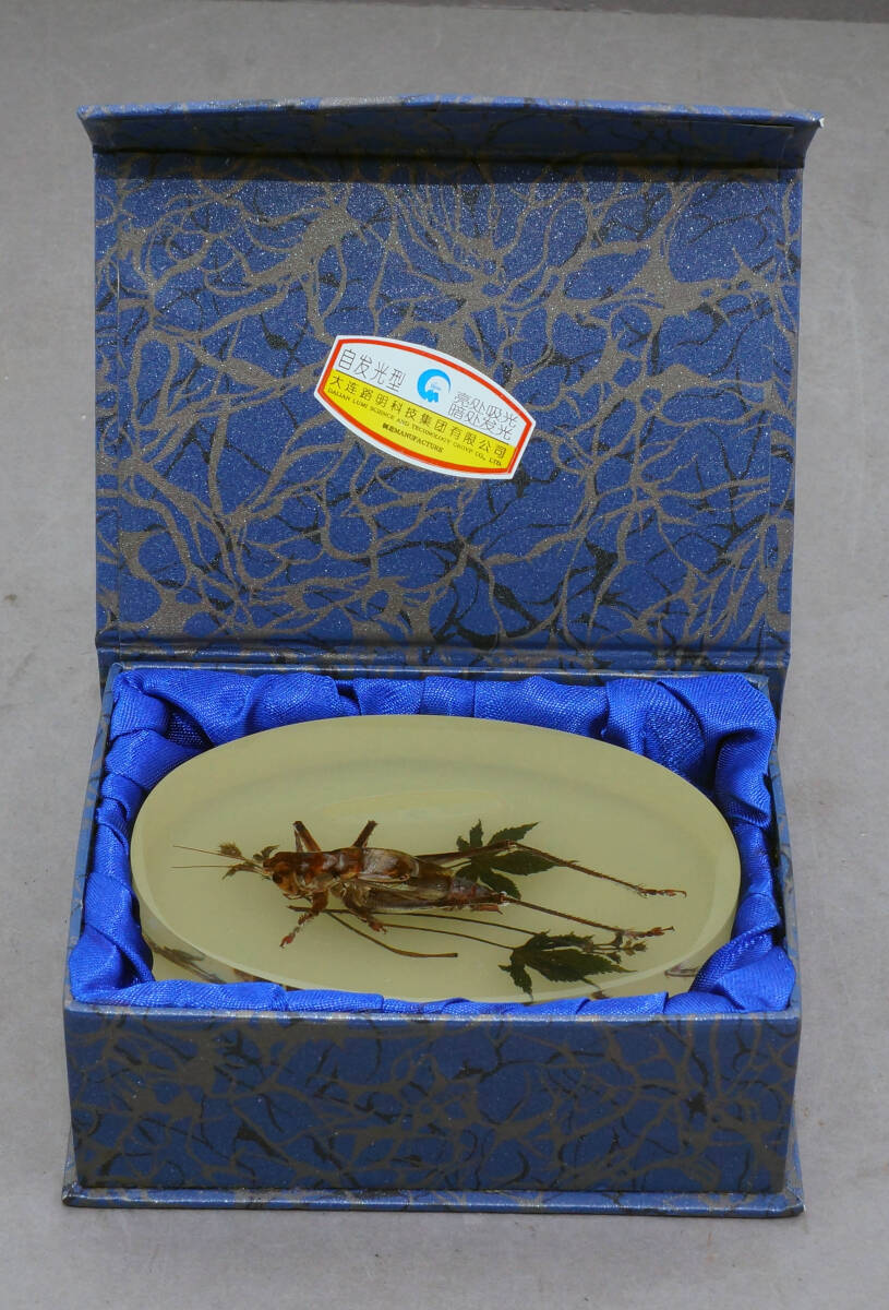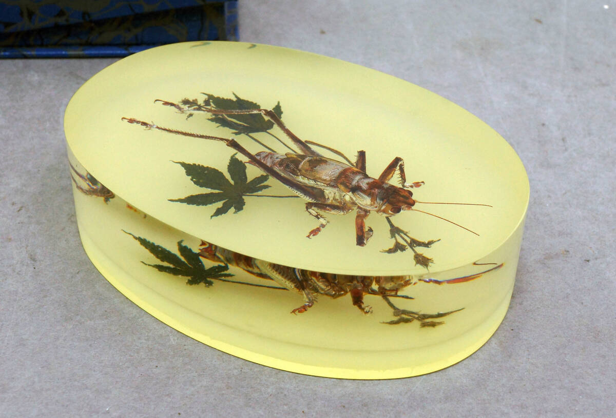 | 中国 大連 工芸品 コオロギ樹脂標本 文鎮 | |