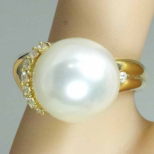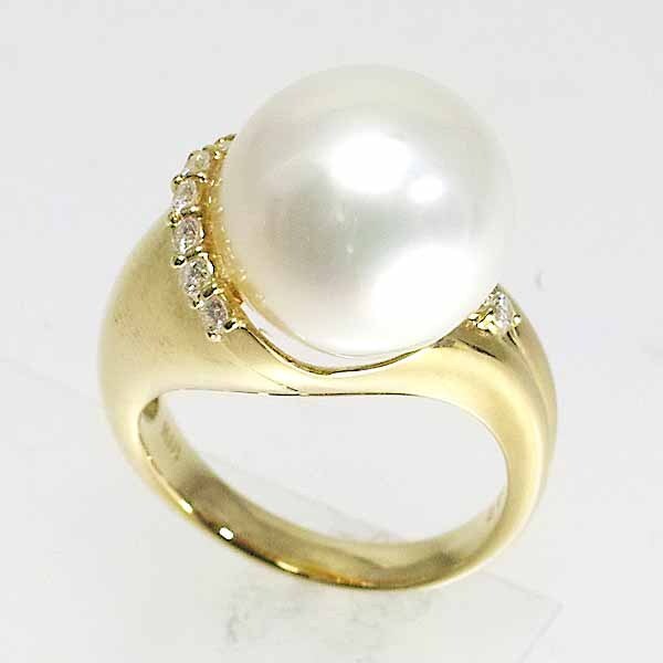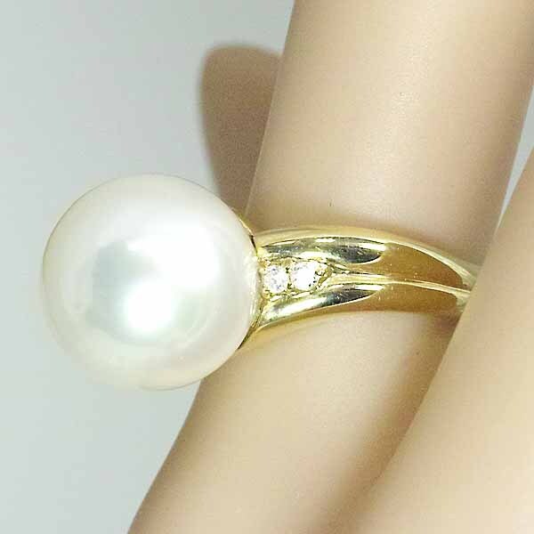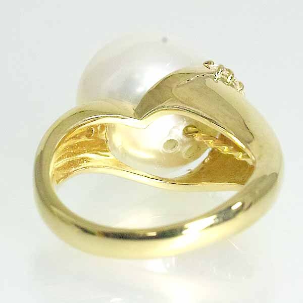 パールをメインに、アシンメトリーにダイヤをセットした18金イエローゴールド製のファッションリング。| 商品詳細 | |||||||||||||||||||||||||||||||||||||