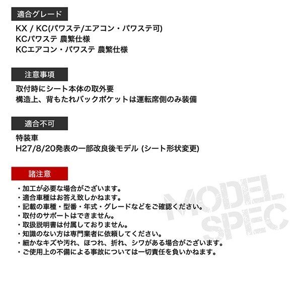 | 適合不可 | 特装車 H27/8/20発表の一部改良後モデル (シート形状変更) |