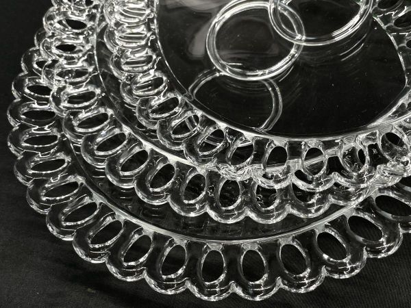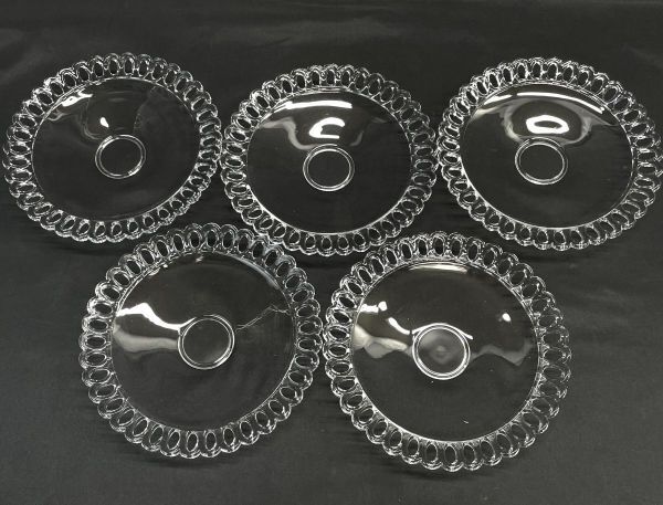 | 【R165】極美品 レース縁 プレート ガラス皿 インテリア 高級食器 5枚セット クリアプレート おしゃれ | ||