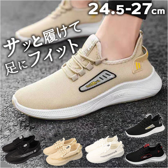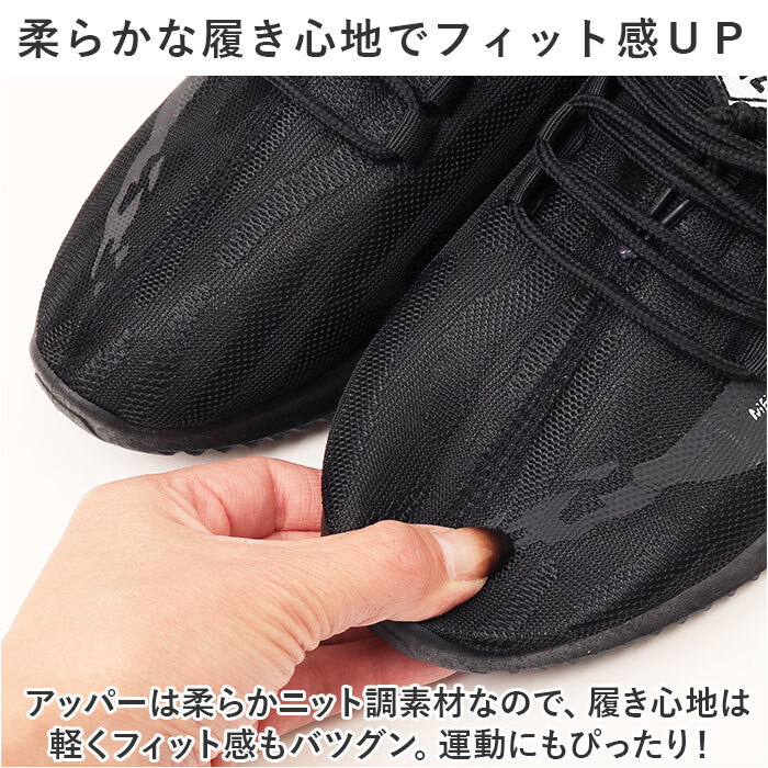 | 商品説明 | ・・柔らかな履き心地☆ジョギングからお出かけまで活躍する、メンズスニーカーが登場。 ・【柔らかな履き心地でフィット感UP】 ・アッパーは柔らかニット調素材なので、履き心地は軽くフィット感もバツグン。運動にもぴったり! ・【抜群の通気性で靴内はいつも快適】 ・メッシュ素材を使用し、抜群の通気性を実現!ムレにくく快適な靴内をキープできる仕様。 ・【柔らかく屈曲性◎のソール】 ・屈曲性に優れた柔らかソールが足の動きをサポート。パフォーマンスの向上に! ・【着脱しやすい伸びる履き口】 ・履き口がグンと伸びる、伸縮性に優れた作り。着脱がスムーズにできるので外出先でもラクラク。 ・【滑りにくいので雨の日も安心】 ・ソール部分は凸凹加工済み。雨の日の地面もしっかりグリップする、滑りにくい安心仕様。 ・【シンプルデザインで普段使いも】 ・幅広いシーンにマッチするシンプルデザイン!スポーツやレジャー、もちろんタウンユースにも。 ・【洗えるインソールで清潔】 ・インソールは取り外しOK。いつでも気軽に洗えるので清潔さをキープできる。 |