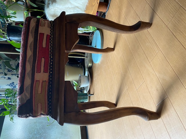 収納袋のタイプではなく木をつかった椅子のタイプのオットマンです。オールドキリムをつかっておりますので、通常日本ではこれより小さなものでも、