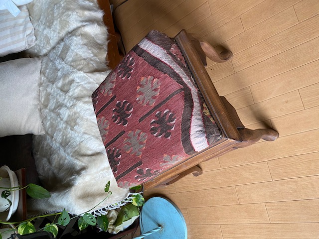 草木染めの貴重なカイセリアンティークキリムでオットマンをつくってみました。