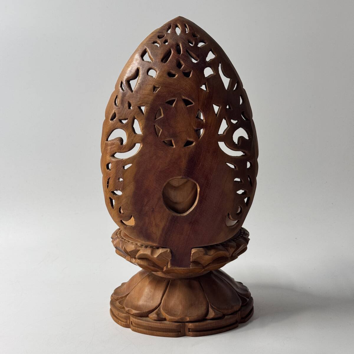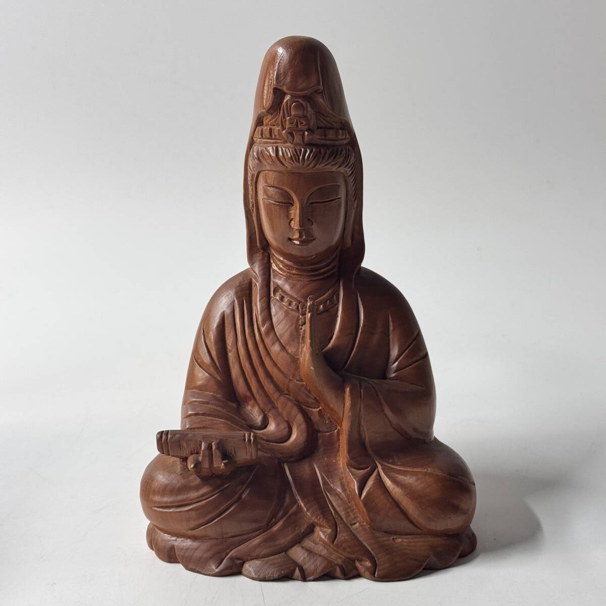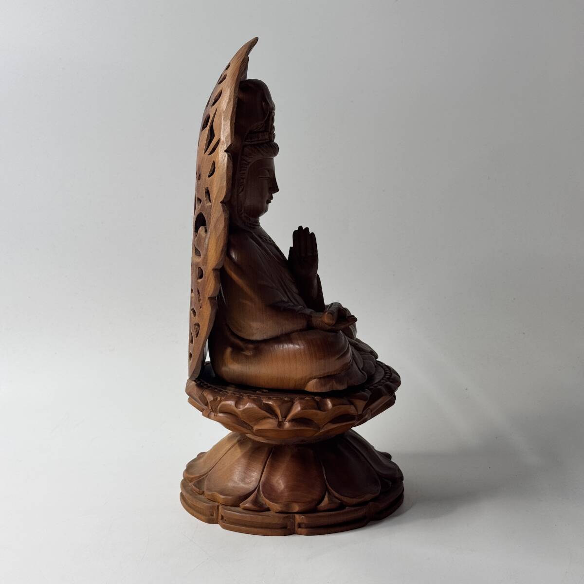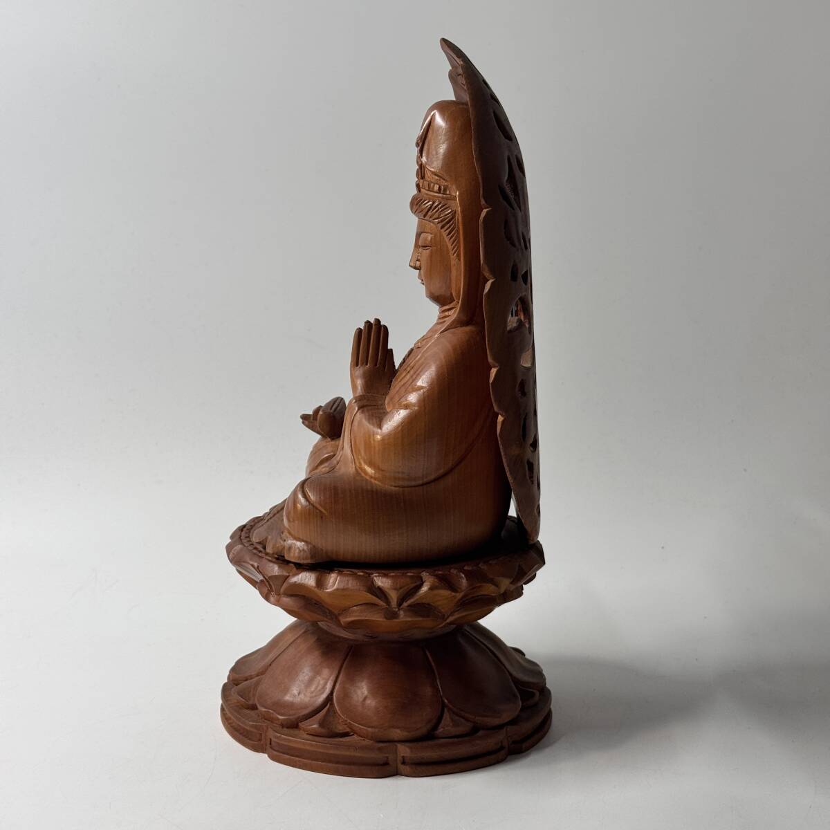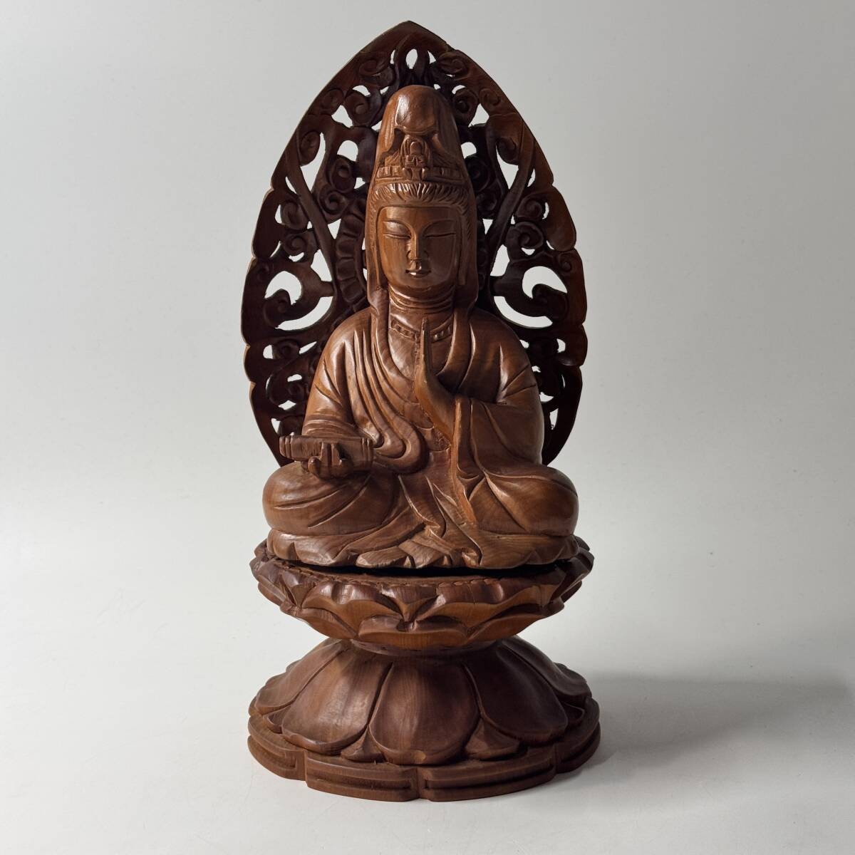 無銘 木工細工 木彫 観音菩薩 坐像 蓮台座 光背 仏像 仏教美術 東洋美術 手造り 経年保管品 現状品の出品です。