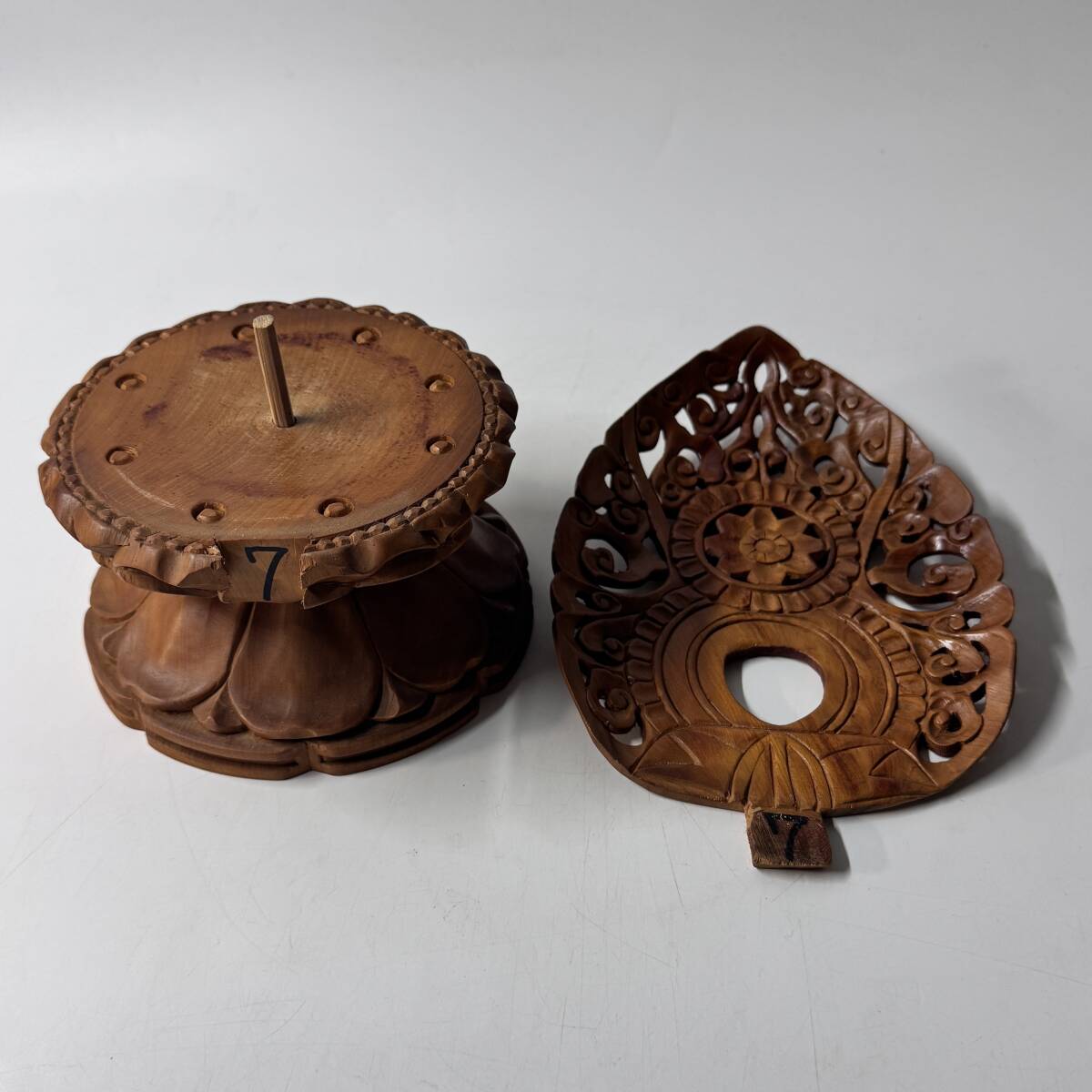 蓮華座から仏像、光背とも取り外せ、組み立て手順なのか?番号が記載されています。