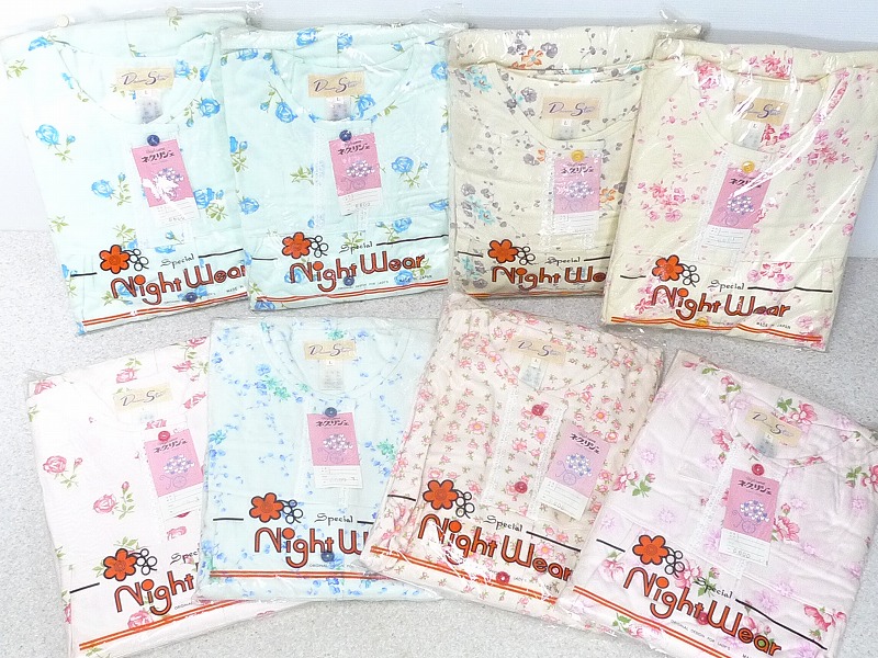 80NW02▲【未使用】昭和レトロ ネグリジェ Lサイズ 花柄 8点まとめて パジャマ ナイトウェア ナイティ 寝巻 部屋着