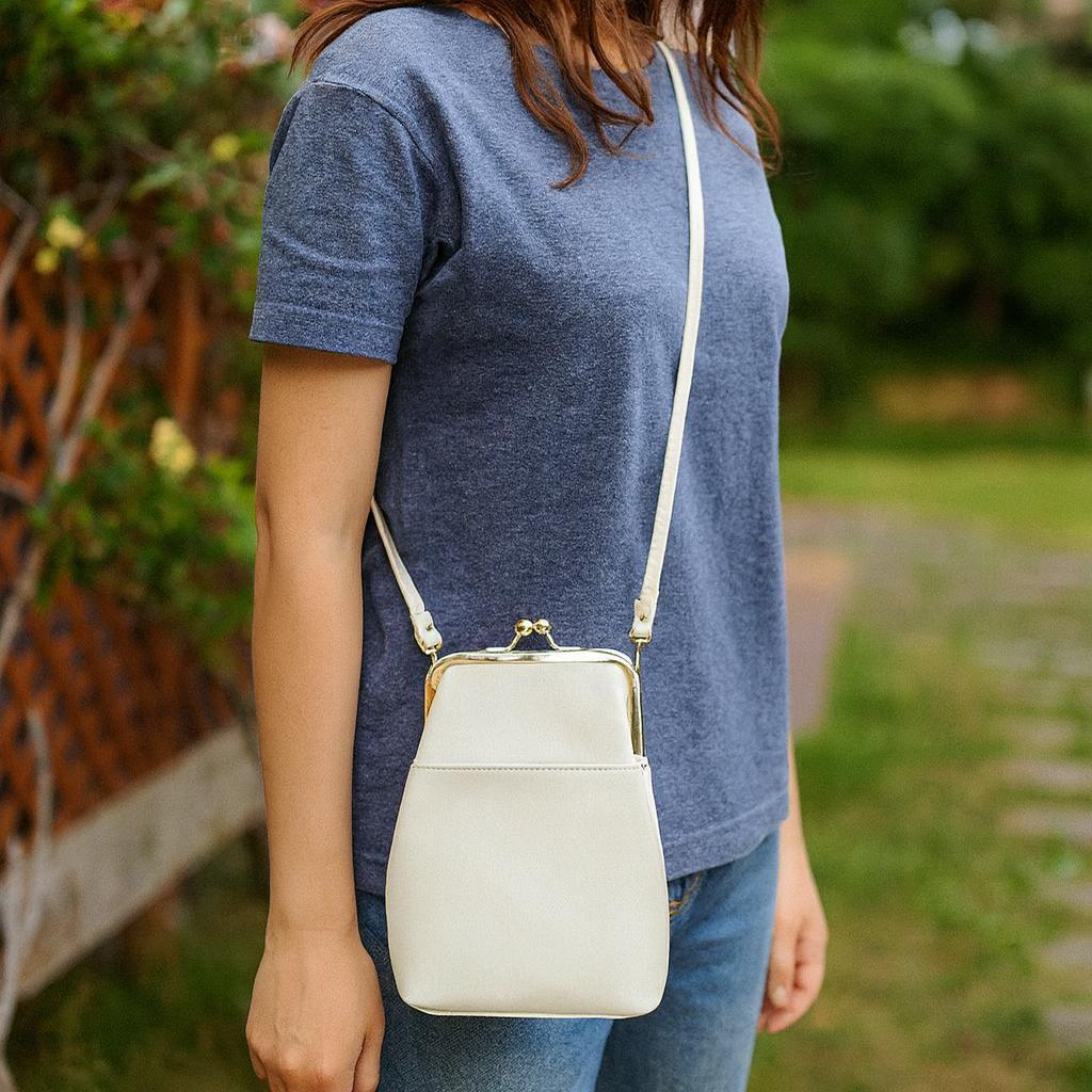 レトロな雰囲気が可愛い、がま口デザインのミニショルダーバッグ。