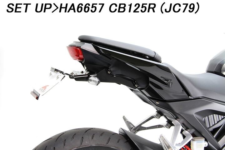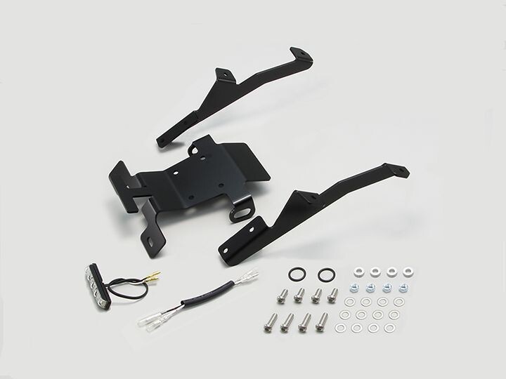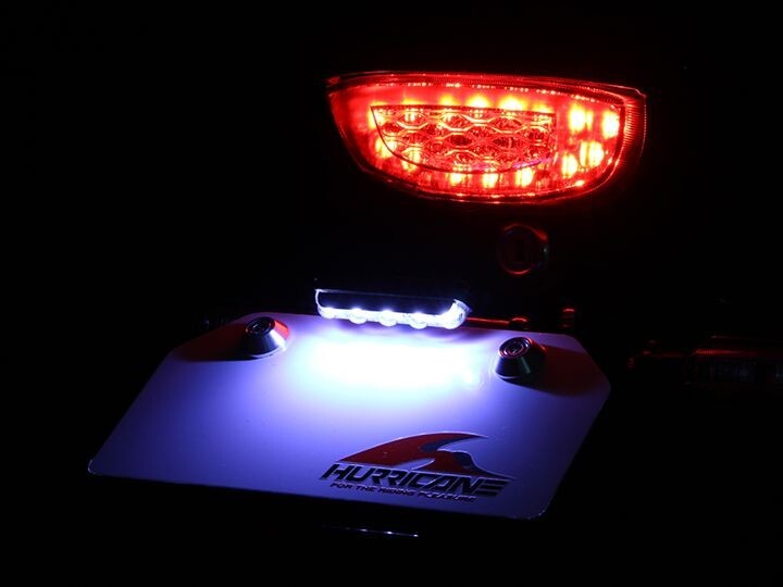 | ●アルミ製ベース ブラックアルマイト ●高輝度白色LEDライセンスランプ&専用ハーネス付 ●純正ウインカー取付可 別途 リフレクターが必要 |