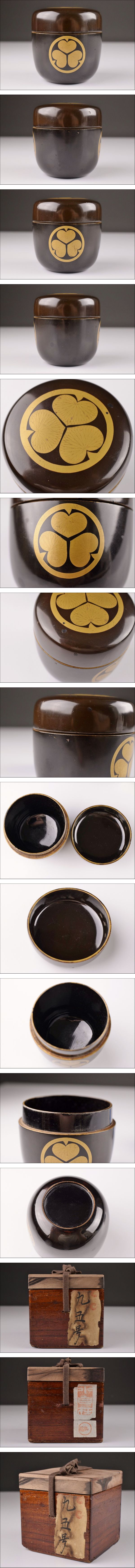 品 名:江戸期 徳川家 三葉葵紋 蒔絵 棗 箱付 古美術品 寸 法:高さ 6.8㎝ 直径 6.8㎝ 総重量:56g 状 態:日焼け、蓋の縮み、小傷等ございます。写真にてご確認願います。 | |||