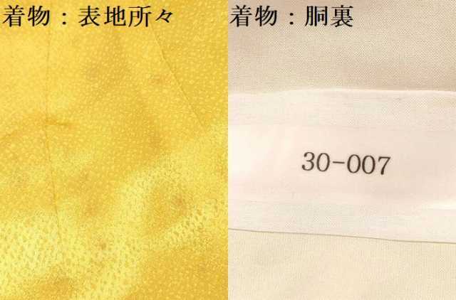| 着物【化繊・重ね衿:取り外し可能】の状態は接写画像のように 表地所々に薄い汚れがございます。 長襦袢【化繊】の状態は 特に目立ったシミ汚れなどもなく大変良い状態です。 ぜひお手入れをされてお召しになられてはいかがでしょうか。 お安く出品致しますので、是非この機会にいかがでしょうか? ※着物衿裏に印字がございます。