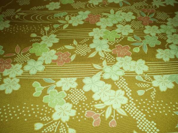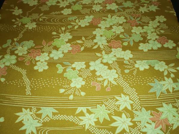 | 【京わぎれ】正絹 長襦袢はぎれ 桜楓文様 からし=替え袖用=2.2m② | ||||