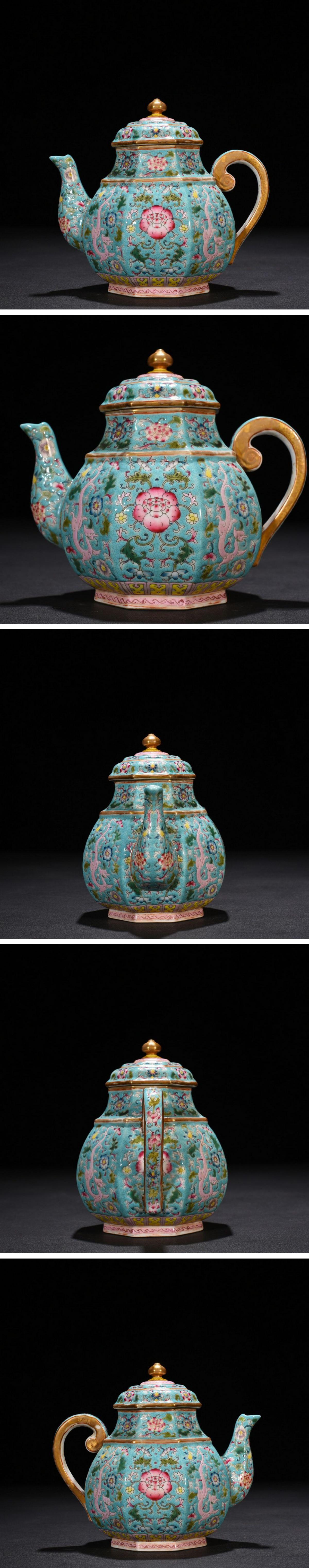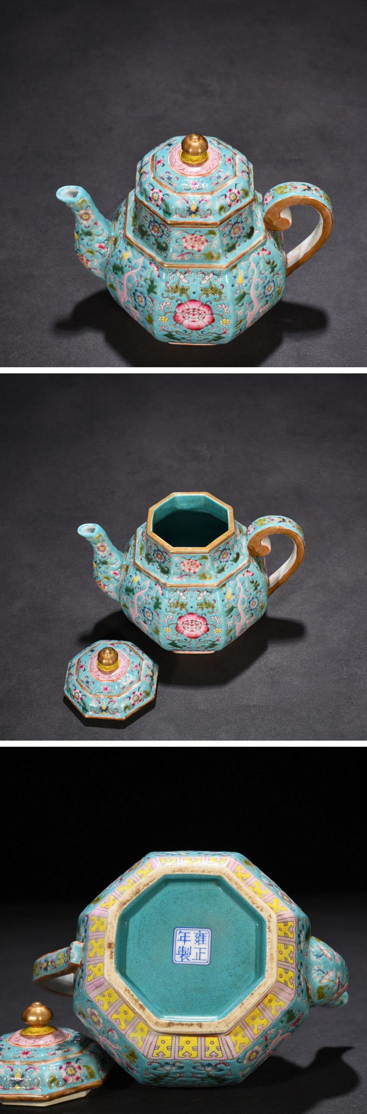 【清】某有名オークション購入 清時代 官窯 大清雍正年製 緑地粉彩花卉紋八方壺 当時物古置物 古擺件 古美術 時代コレクション7L10-BV5