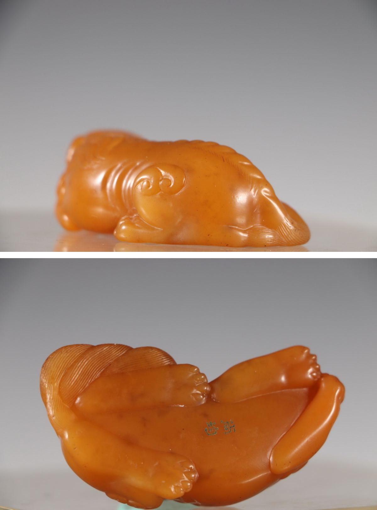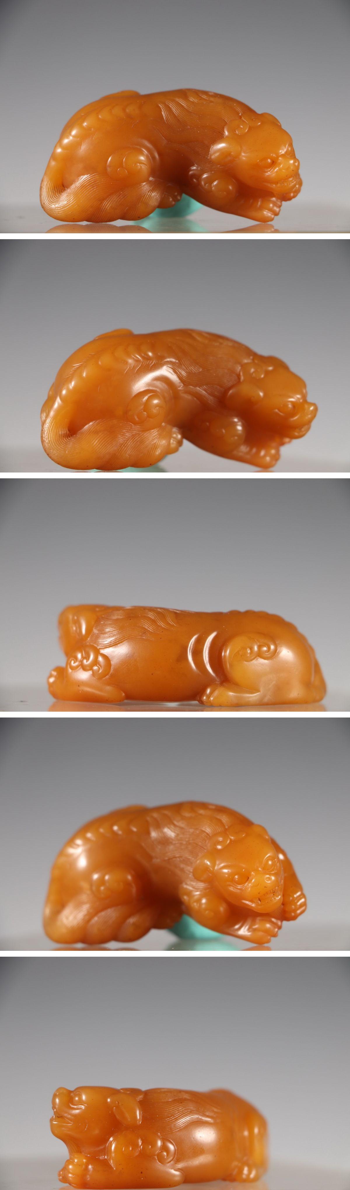 【清】某有名オークション購入 清時代 寿山田黄石 瑞獣紋根付 材質保証 古置物 古擺件 古美術 時代コレクション7L10-BB11