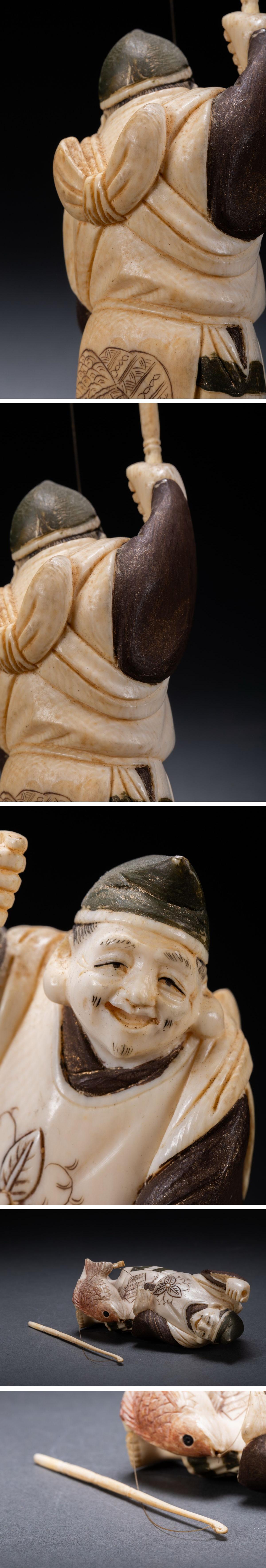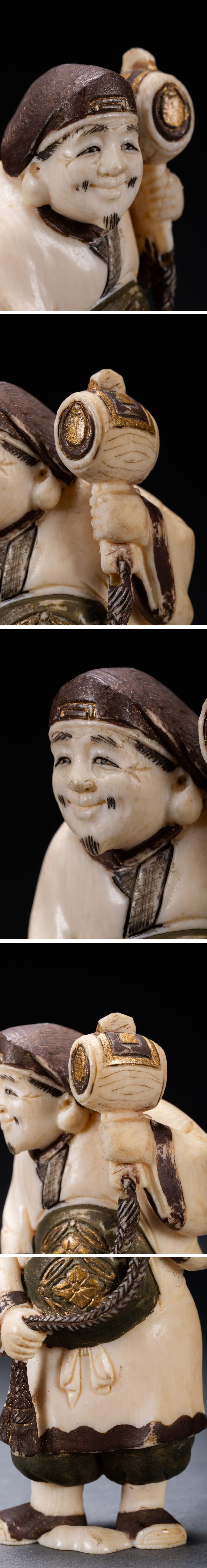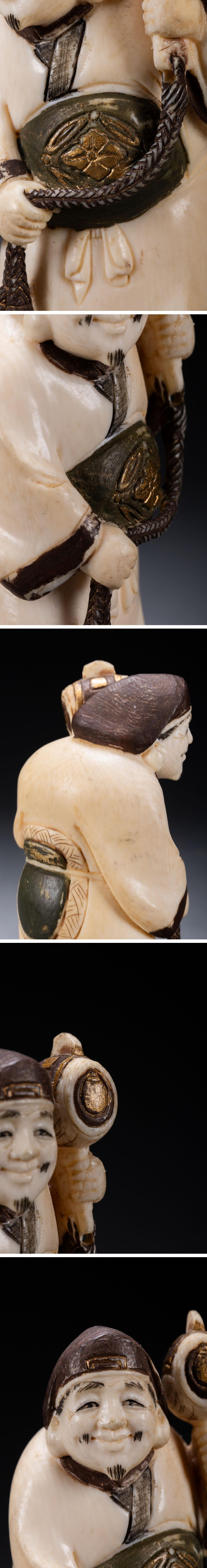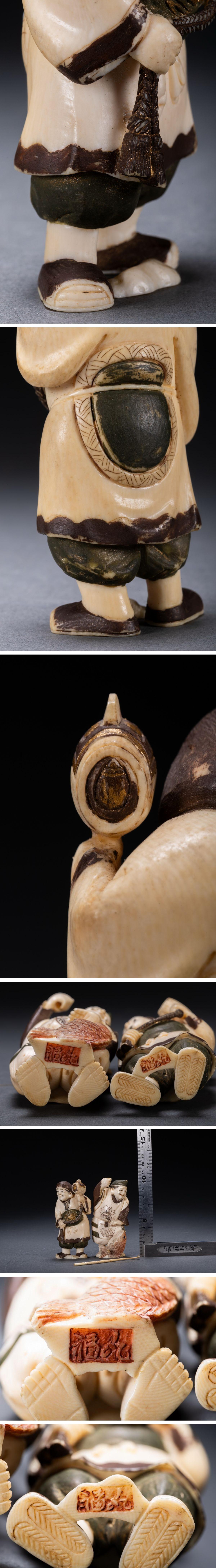 【雲錦】某有名オークション購入 時代物 特殊白材 巨大大黒天・恵比寿造像 古置物 古擺件 古美術 時代コレクションZ-124