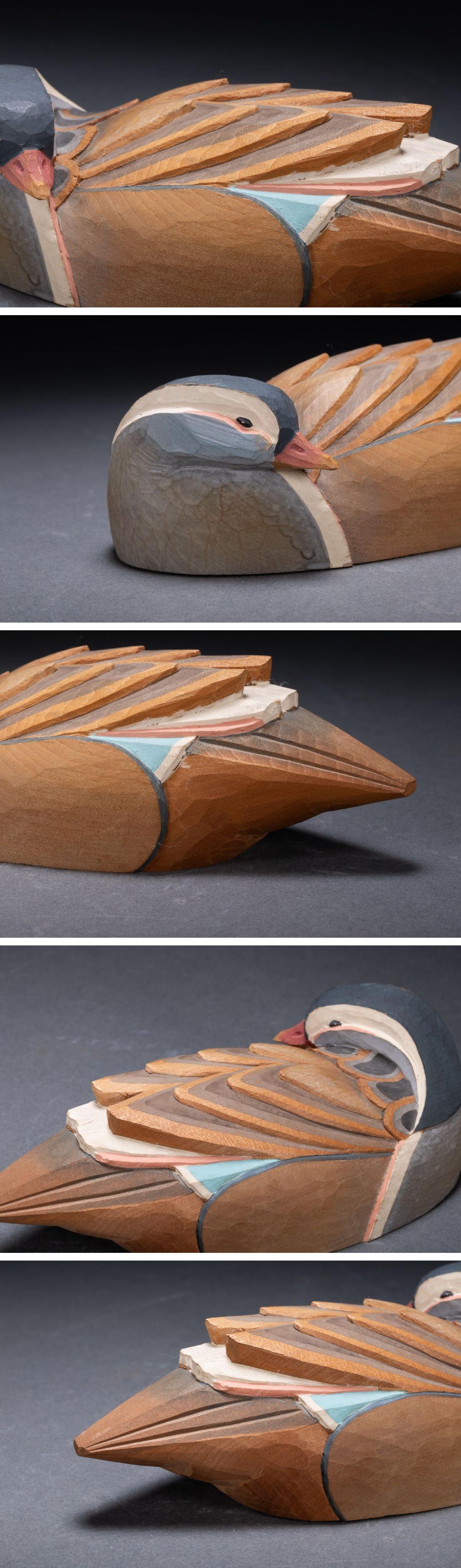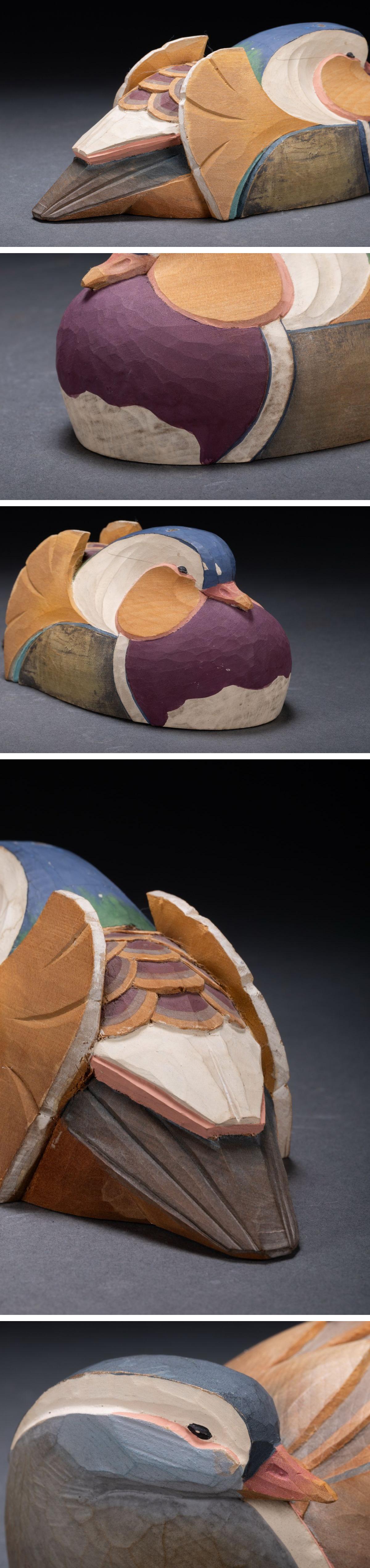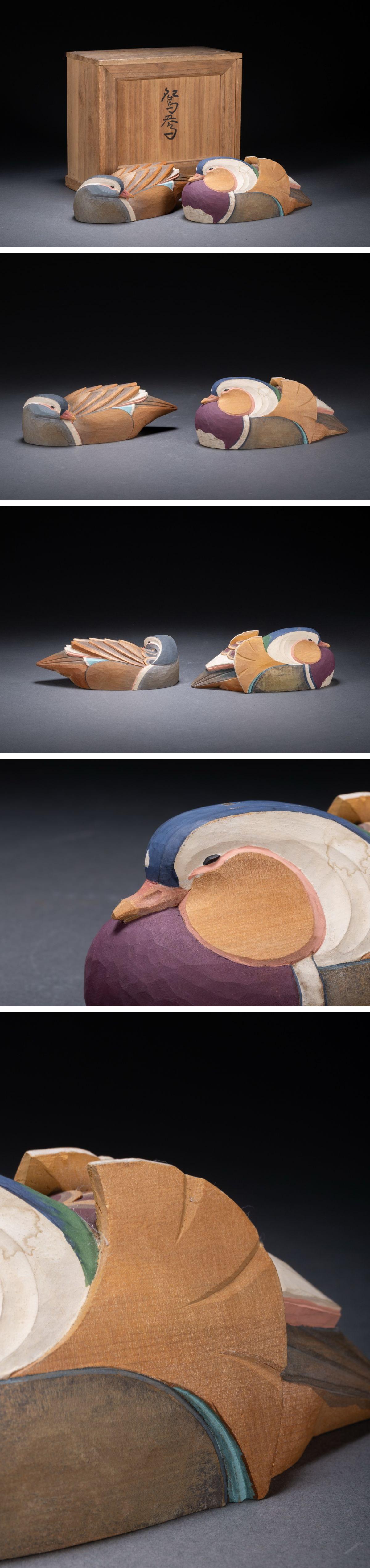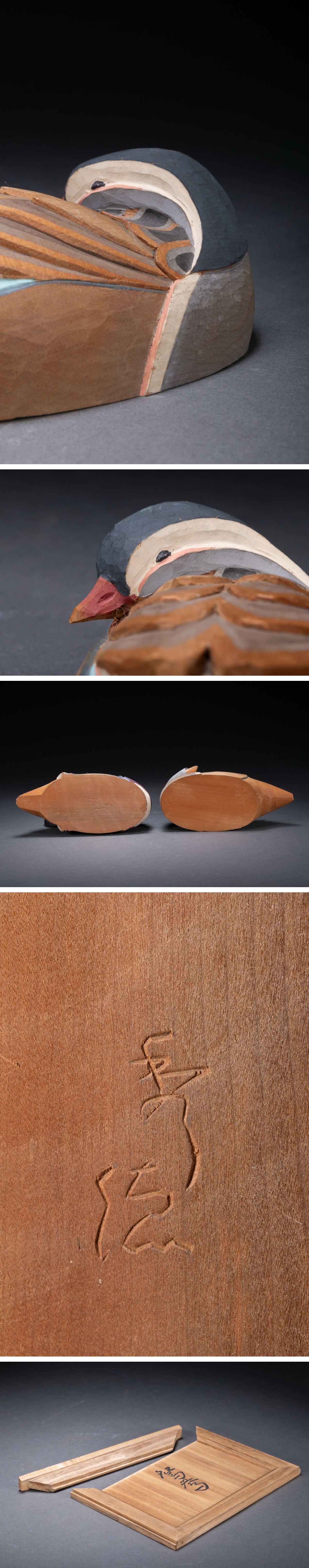 【雲錦】某有名オークション購入 時代物 木彫「秀徳」造 木彫り色絵 鴛鴦置物 共箱 箱傷あり 古置物 古美術 時代コレクション7L10-124S1