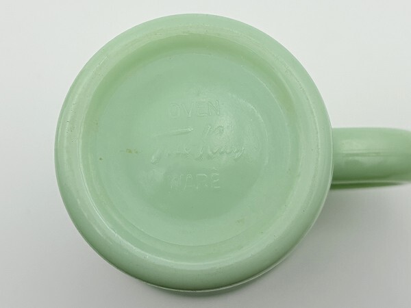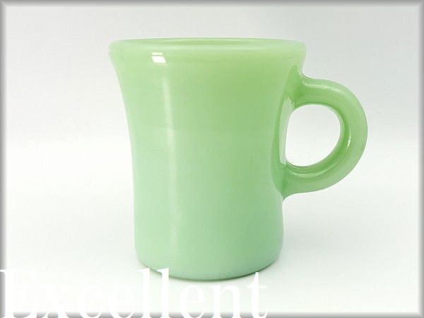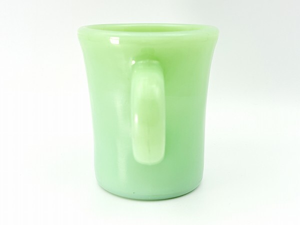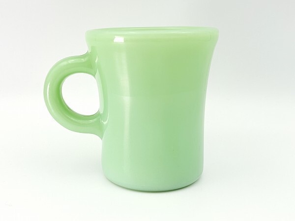 ■商品説明:レア度:★★★(頑張って探さないと見つかりません。)ファイヤーキングのFireKing ジェダイレストランウェアシリーズの チョコレートマグ です。 スリムマグとも呼ばれる、ホットチョコ用につくられたかわいいマグ。スリムな分容量は少なめで約180ccです。 レストランウェアシリーズは、レストランや軍、ホテルなどで業務用として使われていました。 業務用なだけあって、とにかく頑丈です。チョコレートマグはもともと製造数が少なめだったので、最近では入手困難なマグです!! ■サイズ:横幅10cm、直径7.6cm、高さ8.7cm |
