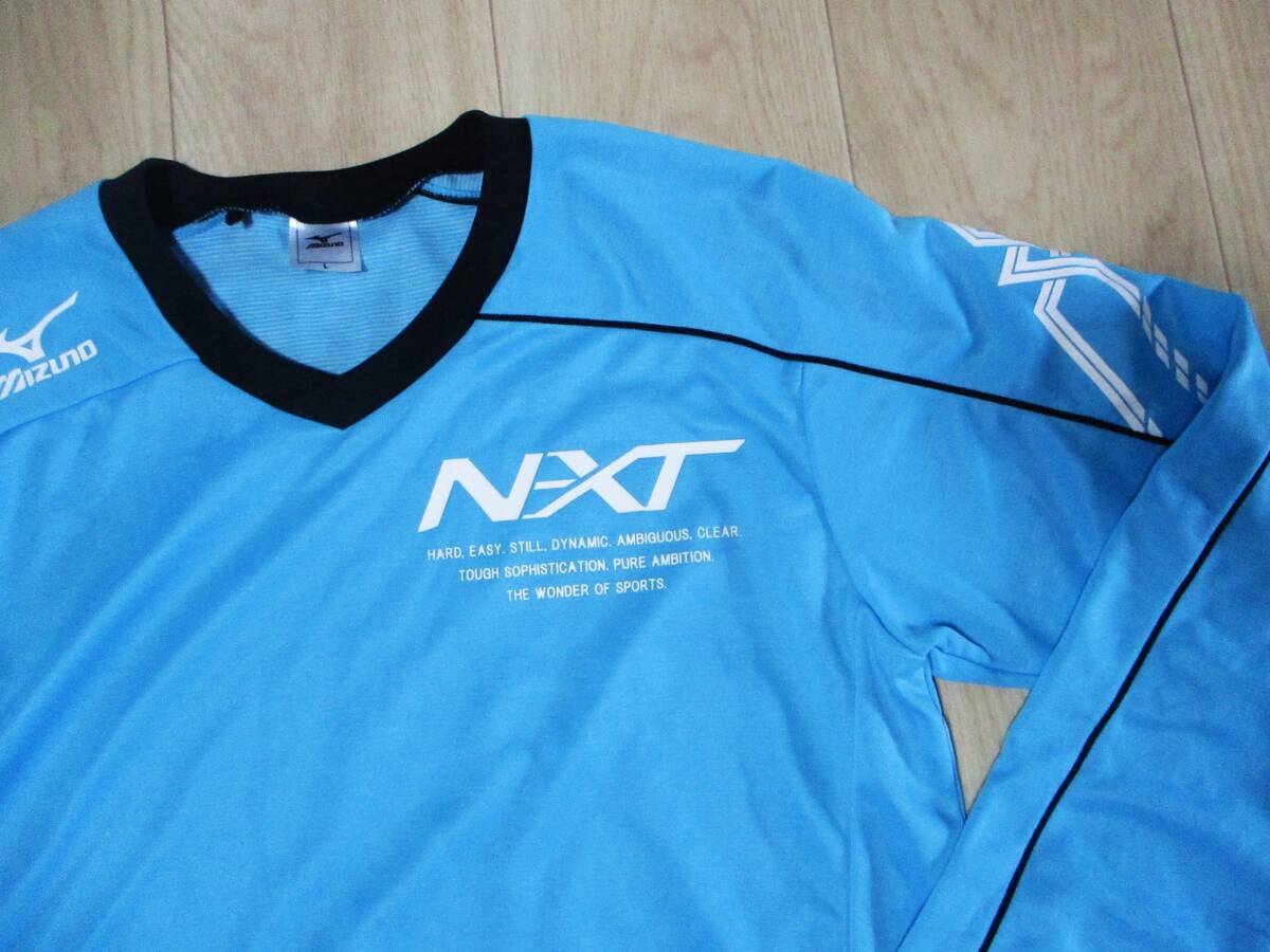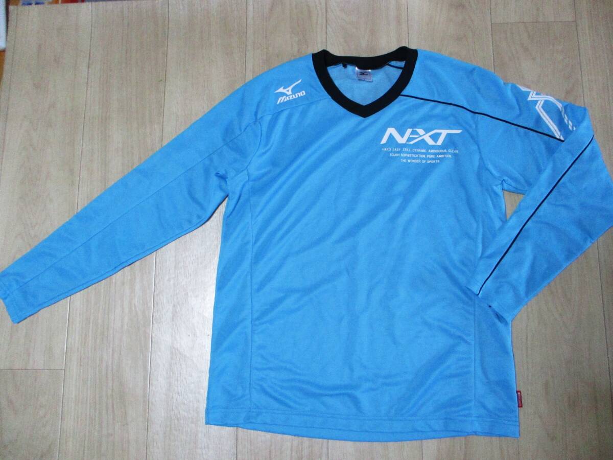 USED・ミズノNXT・長袖Tシャツ・水色・サイズL・着丈66㎝・身幅脇下51㎝・ポリエステル100%・汚れなどは有りませんが、USED品にご理解頂ける方の入札お願い致します。ゆうパケット230円で発送させて頂きます。