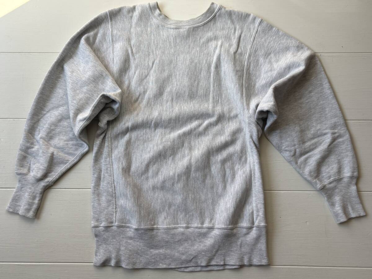 REVERS WEAVE SWEAT リバースウィーブ スウェット 状態: メキシコ製 古着 表記サイズ: MEDIUM 実寸: 着丈約64cm 身幅約47cm 肩幅約42cm 袖丈約60cm 素材: コットン89% ポリエステル8% その他3% カラー: シルバーグレー 『 Champion チャンピオン REVERS WEAVE SWEAT リバースウィーブ スウェット 』 ・メキシコ製 90年代の後期刺繍タグです。 チャンピオンらしいリバースウィーブのボディにMICHIGANとプリントされた本格カレッジプリント、プリントも程よくひび割れておりいい雰囲気です。袖にCマークがあります。 ・古着特有の着用感はあります、首元や袖リブに小穴があります、その他目立つ汚れやダメージは見受けられません。年代のわりにコンディションも良く古着慣れされた方なら問題ない状態かと思います。わずかなステッチのホツレや首元のわずかな黄ばみ、目立たない穴はご了承ください。出品前に洗濯済みです。 ・今回、コレクションしていた80年代90年代のコンディション良好チャンピオンスウェットを多数出品しましたので、是非ご覧ください。 | ||||