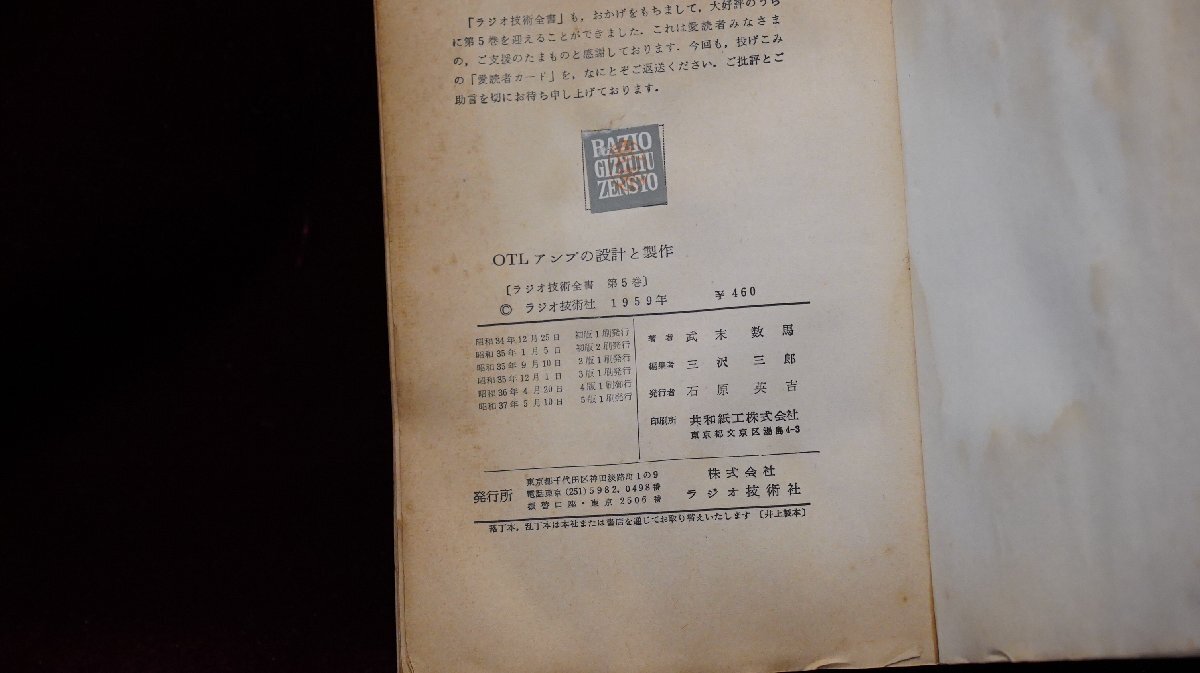A&P●ラジオ技術:「OTLアンプの設計製作」「武末数馬著」名品:S57年番:(現状渡)|