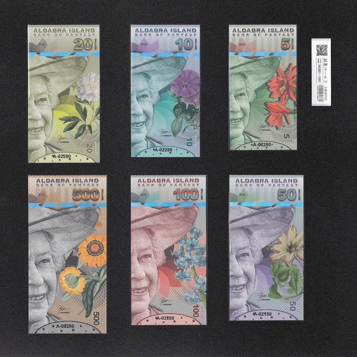 アルダブラ島 5/10/20/50/100/500ドル紙幣 6枚セット 2018ファンタジーバンク 完未品 収集ワールド