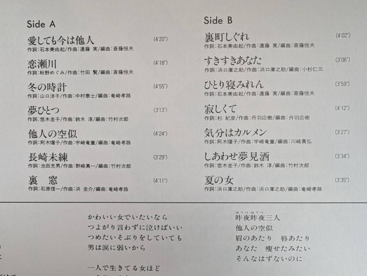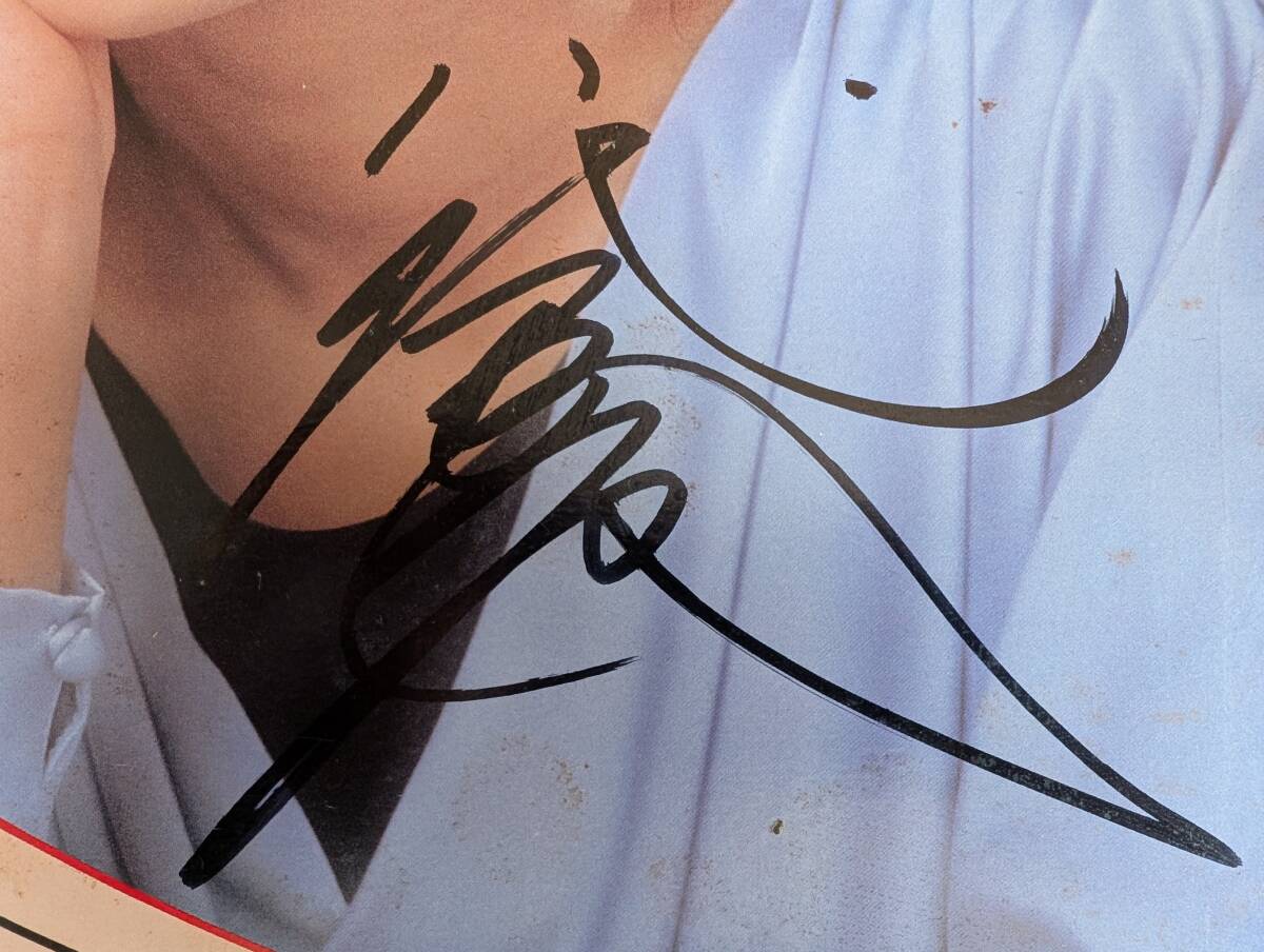 w)帯(軽癖茶斑少々)、歌詞カード(軽癖手皺少々)、申込書(未使用)。表直筆サイン入ジャケ取出口上部癖皺1ヶ所/軽茶斑若干/抜無、盤緩ソリ少.盤面光に翳して漸く分かる表面擦少々/印象綺麗部類/再生印象基本的にはアナログ当時盤相応チリ音レベルかと思います。