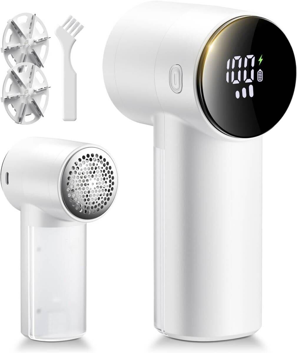 Sunytree 毛玉取り 電動 【2025アップグレード版・大型6枚刃】けだまとり 毛玉クリーナー 液晶ディスプレイ付き 3段階調整 強力6枚刃 毛玉カッター Type-C充電式 安全装置 持ちやすい 軽量 旅行 自宅用 家庭用 替え刃1枚付属 毛玉取り器 どんな衣類でも 靴下 寝具 カーペット ギフト 日本語取扱説明書付き