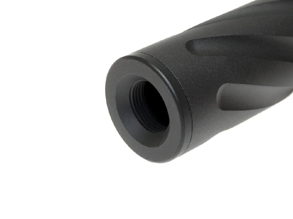 商品説明 ITEM INFO コンパクトサイズな軽量サプレッサー!しかも延長が可能! SLONG AIRSOFT 14mm逆ネジ スリムショートサプレッサー スパイラルフルートです。14mm逆ネジアウターバレルに装着可能です。 全長110mm、直径27mmとコンパクトでスリムなサプレッサーです。先端側にも14mm逆ネジが切られており、逆14mm♀→♂変換アダプターを間に噛ませばどんどん延長していくことも可能になっています! 自動車のマフラーのように、中間サイレンサー(タイコ)のように出口形状にかかわらず消音が可能になるかもしれません!? もちろん通常のサイレンサーのように銃口先端に取り付けても全く問題なし!使い方はあなた次第! 商品基本情報・スペック ITEM SPEC ●商品名 : SLONG AIRSOFT 14mm逆ネジ スリムショートサプレッサー スパイラルフルート ●商品番号 : SL-01-08 ●カラー : BK(ブラック) ●対応 : 14mm逆ネジ アウターバレル ●素材 : アルミ ●重さ : 62g ●サイズ : L 110mm×Φ27mm ●内径 : 約22mm ●14mm逆ネジ対応 注意事項 ITEM NOTE ∇ご購入時の留意事項 ※商品はすべて点検してからのお届けになります。商品によってはパッケージの開封等を行う場合もございますことをご了承ください。 ※商品には万全を記しておりますが、万一不備な点がございましたら、お手数ですがお問い合わせフォームにてご連絡頂ますようお願い致します。なお、海外製品につきましては、輸入時についた若干の傷、痛み等が見られる場合がございます。 国内製品のような完全品をお求めの方はご遠慮下さい。 ※商品が適合外であった場合、またはお客様都合による交換・返品・返金は出来ません。よくお確かめの上、ご購入下さい。 ※モニター環境により、実際の商品の色と若干異なる場合がございますのでご了承下さい。 ※他サイトでも同時販売の為売り切れの際はご了承下さい。 ※売り切れの際は早急にご連絡させて頂きます。(当社休業日を除く) 関連商品 RELATED ITEM |