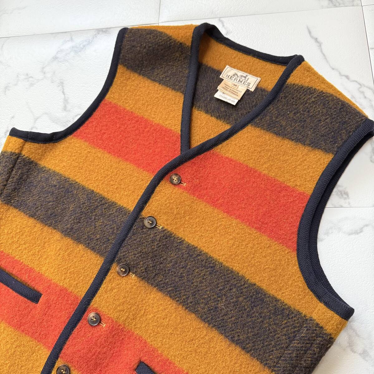 | ★ 商品名 ★ 希少 HERMES エルメス ヴィンテージ メンズ ロカバール マスタードイエロー ウール100% ボーダー ベスト フランス製 size 46 レア ★ |