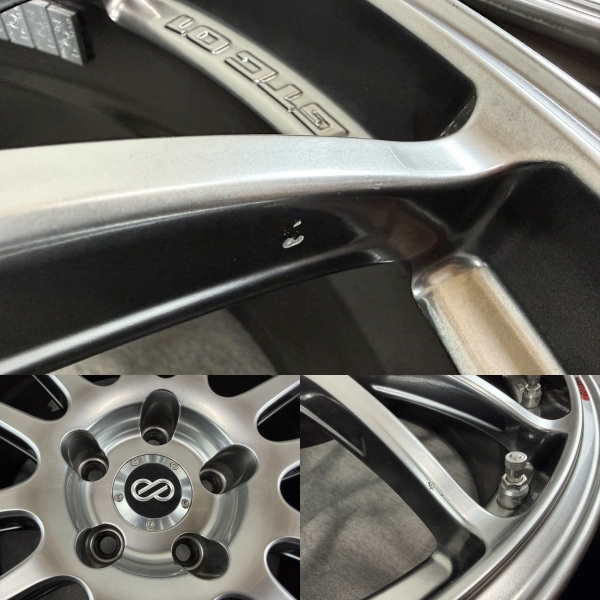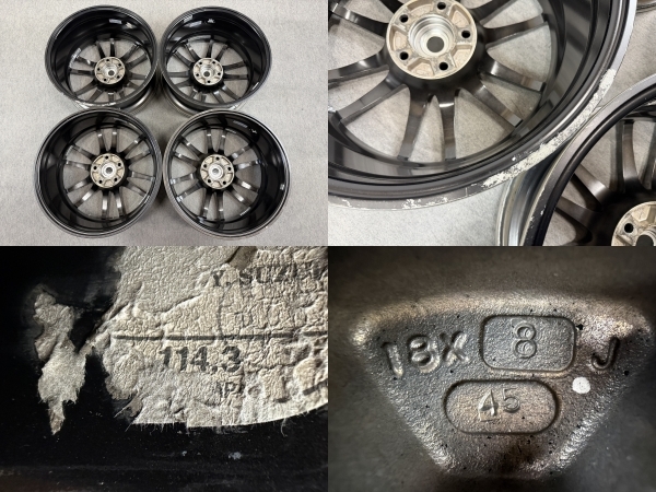 ENKEI GTC-01 ・リム径 18インチ ・リム幅 8J ・オフセット +45 ・PCD 114.3 ・穴数 5H ・ハブ径 約75mm(実測値のため誤差が生じる場合がございます。) ・状態 汚れ、擦れ、裏リムに塗装剥げ等ありますが、表面は全体的に綺麗な状態です。 歪みやクラックはありません。 | ||||