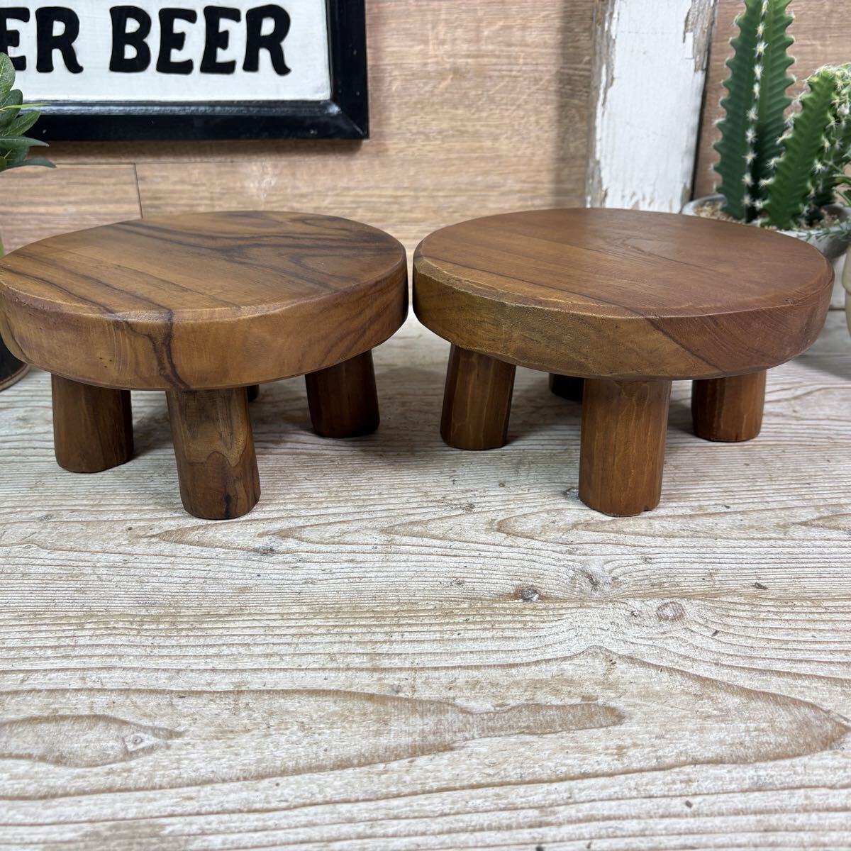 | ◆◇商品詳細◇◆ チークミニ花台2点 材質は世界三大銘木のチーク材で、美しい木目と強靭な耐久力が特徴の高級材です。オールドチーク無垢材を使用しているため木目に深みがあります。ずっしりとした重みのあるお品です。頑丈で、使い込むと深みが増していくため長年お使いいただけます!テーブル、花台、置台にはもちろん、ショップのディスプレイなど使い方は様々です!天然無垢材なので和室洋室どんなお部屋にも合いますよ。世界にひとつだけの形をお楽しみください。人気商品が今だけ送料無料のこの価格!他では買えない商品をぜひこの機会に♪ 二個セットの価格です。 【商品状態説明】 こちらの商品はインドネシア輸入品になります。 天然の古木(オールドチーク)を使用して制作された商品です。古木を使用している商品の為、キズ、色むら、少々のひび割れなどがある場合がございます。 ※使用には問題なく、天然の味わいをお楽しみいただける品ですが、古木の特質(キズなど)ご理解頂ける方のみご購入お願いいたします。画像の現品を発送いたします。 【サイズ】1個分サイズ 直径約20㎝ 高さ:約10㎝(足含む) 【素材】 オールドチーク 【カラー】 ブラウン | ◆◇発送方法◇◆ ●送料は基本無料ですが、沖縄・離島などにお住まいの方はご負担ください。 (沖縄・離島の方はメールにてご連絡いただければ、送料をお知らせいたします。) ●ヤマト運輸・佐川急便・第一貨物のいずれかにて配送いたします。 (運送会社の指定はできません。ご了承ください。) ●日時・時間指定のある方や、お問い合わせ(追跡)番号をご希望の方は取引連絡の際にお知らせください。 | |