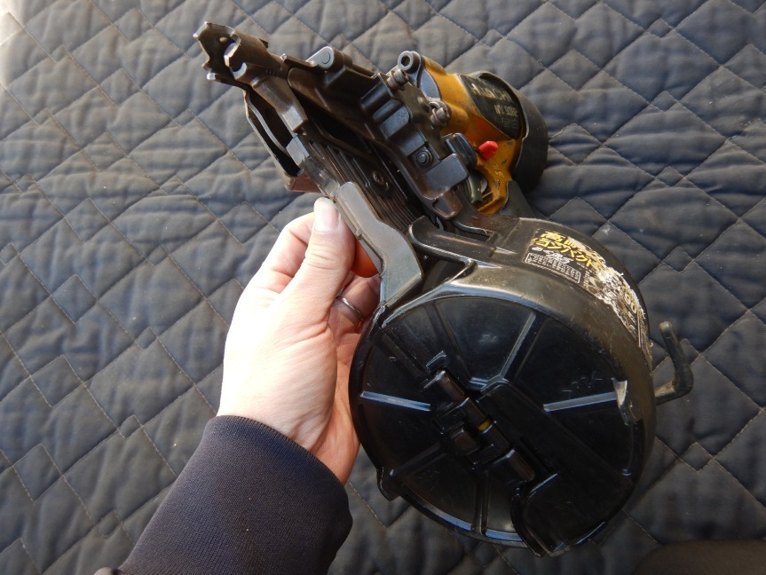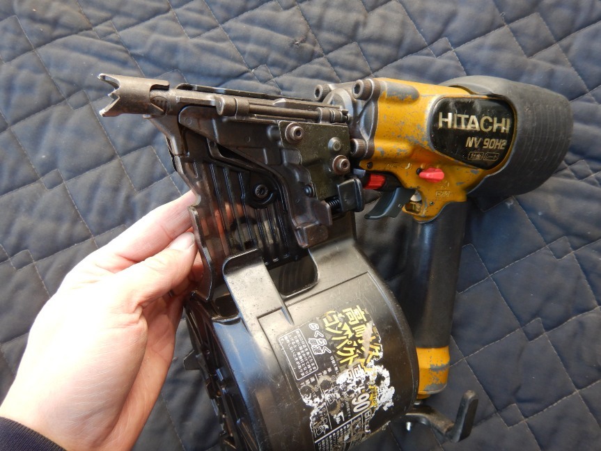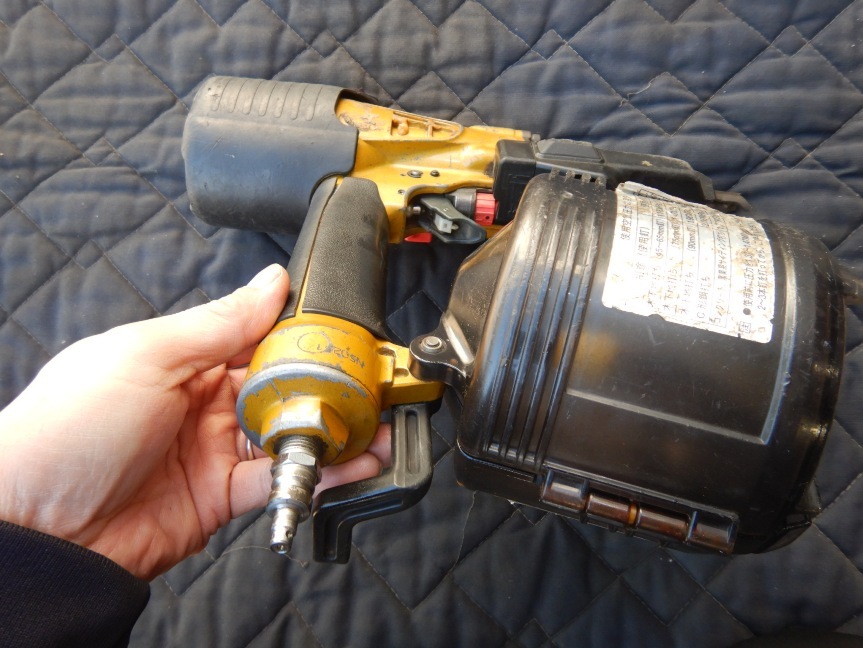 即決税込 中古保証付 日立 90mm 高圧釘打機 NV90H2 N75 CN90対応 N90釘非対応 ========================== この機種は旧機種のため、 現在の改定後のN90釘に 対応しておりません。 N釘はN75までとなります。 2×4のCN釘はCN90まで 対応しております。 日立 NV90H2 使用釘 針金 45-90mm シート 45-50mm 深さ調整機能 N釘 50-75 CN釘 50ー90 鋼板3,2mmまで コンクリート対応 使用空気圧力 1,18-2,26MPa 重量 2,3kg サイズ 280×314×132mm 実際にエアを接続して ロール釘を打ち込んでの 動作テストをしております。 75mm釘で木材への 打ち込みテストをしております。 エア漏れもなく快調に 打ち込みできました。 連発、単発打ち込み、深さ調整動作 確認済で問題ありません。 プラスチックケースはなく 本体のみです。 この機種はすでにメーカーからの 部品供給は終了しており、 部品を必要とする修理は 対応できません。 そのため、到着後1か月の 初期不良に対しては 返品にてご対応させていただきます。 詳しくは下記保証内容を ご参照ください。 ================ 即決ですので入札=落札です。 落札価格は消費税込みの金額です。 早いもの勝ち!! ================ |