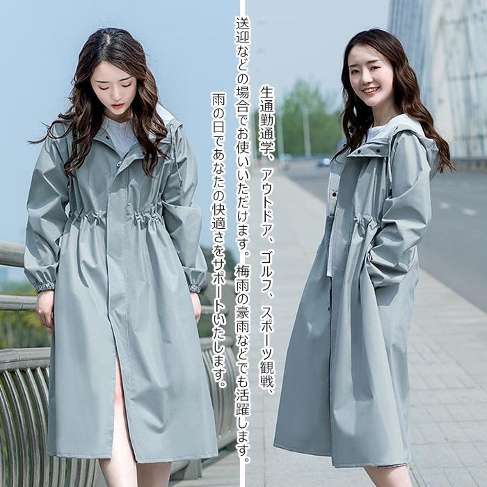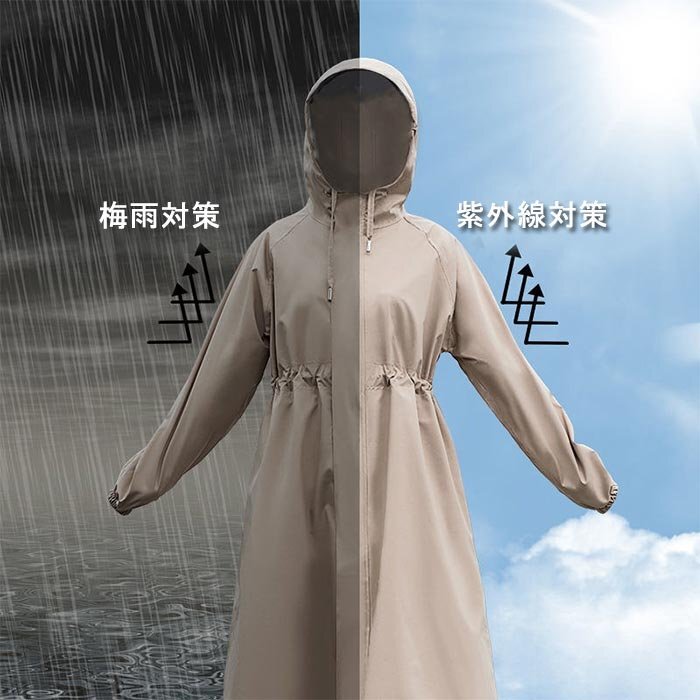 【オープンファスナー式】スムーズに着脱できるオープンファスナーを採用、急な雨でもサッと着ることができます。おしゃれなレインコートは、雨の日もおしゃれなコーディネートを楽しむことができます。