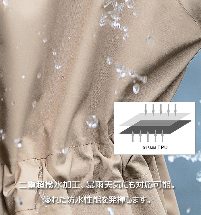 【二重つば付き】レインコートは視界と防水性を最大限に高める二重構造のレインバイザーを装着しており、顔と服を濡れにくく、メイクした女性が大喜びです。用途に応じて取り外しことができます。