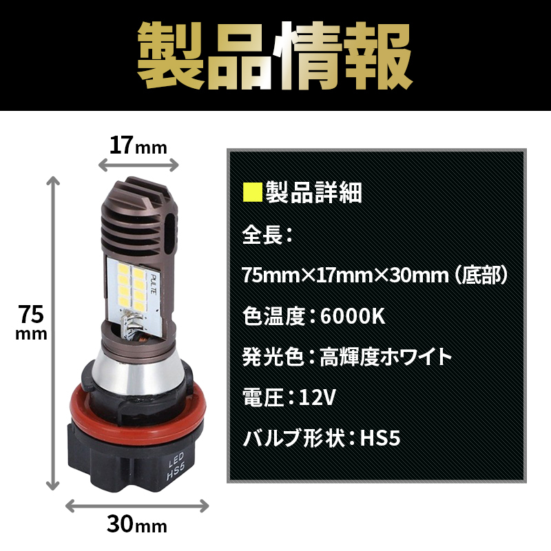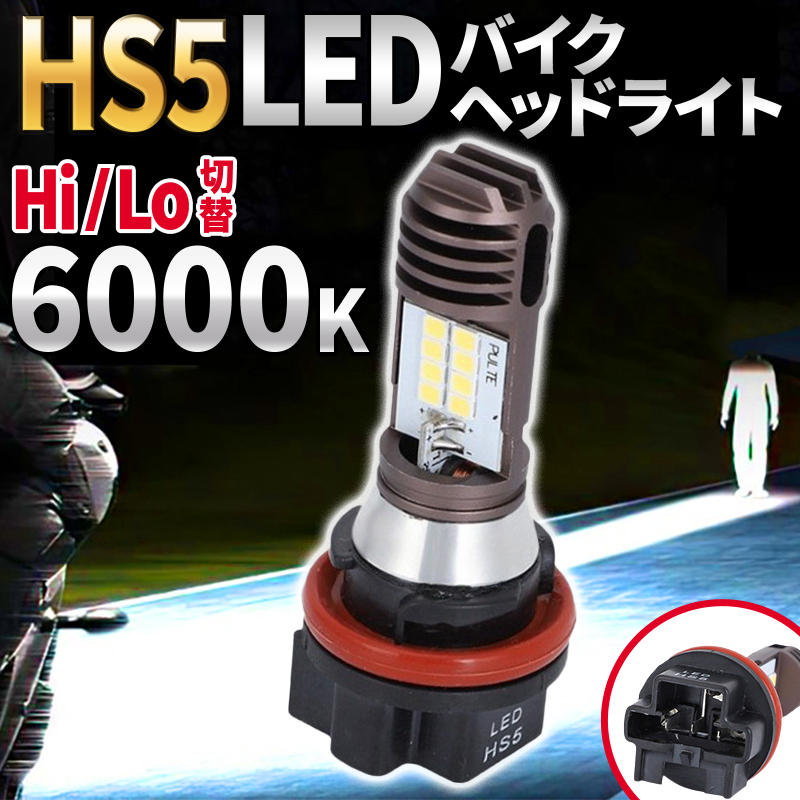 | HS5 バイクヘッドライト 1個 LED バルブ ホワイト 白 原付 12V 6000K Hi/Lo 切替 ホンダ リード PCX スズキ アドレス レッツ4 003 |