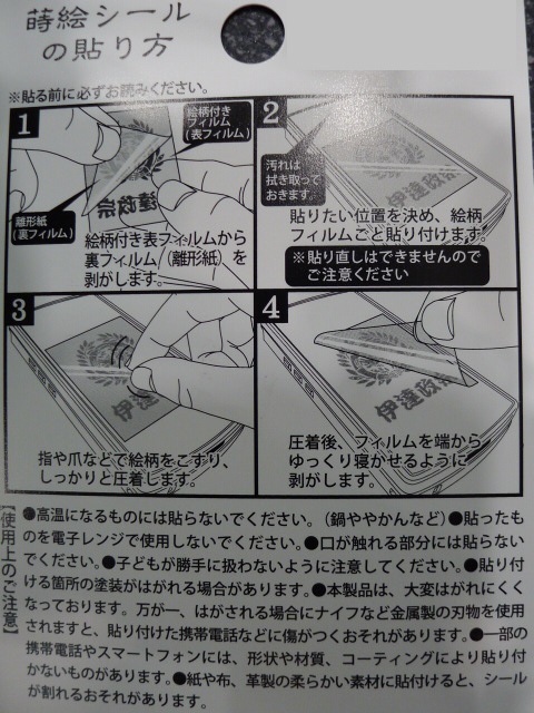◆戦国武将シリーズ [彩] 蒔絵シール ◆戦国武将、戦国の世を戦い抜いてきた知将、名将、武将達・・・。 四百年以上経った現代にも数多くの功績を残しています。 そんな知将、名将、武将達の偉業を称え『戦国武将 蒔絵シール』を創りました。 ~耐久性・耐熱性・耐水性・対溶剤性を兼ね備えた仕様。3版構造。~ ◆食品衛生法をクリア。水や洗剤に強いので、お気に入りの食器などにも使用可能です。 紙や布、革製品には貼れません。 ◆【シールサイズ】40×50㎜ ◆蒔絵シールは一般的に販売されている「シール」とは違い特殊な製品です。 硬質でツルツルした面であれば、スマートフォン・ゲーム機・マグカップ、自転車、 ヘルメットなど水や洗剤で洗う物や屋外で使用する物にも貼ることが可能です。 (※電子レンジ・食器洗い乾燥機 使用不可) ◆貼り方解説書付き。 ■□■■□■■□■■□■■□■■□■■□■□■□■□■□■□□■□■□■■□■□■□■□■□■□■□■■□■ ◆他にも 戦国武将 関連品も続々 追加出品中です。 ◆「普通郵便」(☆¥110- ※ 補償無し・追跡無し)又は 「ネコポス」 (☆¥230- ※補償付き : 荷物の紛失・破損に対する引受限度額は3,000円)にて発送予定。 ※『日本家紋 蒔絵シール 』や『戦国武将 蒔絵シール』シリーズ等を同時に同じ宛先に 送付の場合、約 6~7点(柄)まで ¥110- (又は ¥230-)にて可能。 ◆入札後のキャンセルは受け付けません。 ◆ノークレーム、ノーリターンでお願いします。 ◆オークション終了後24時間以内にご連絡をお願いします。 ※24時間経過後は 落札者都合によるキャンセルとして対応致します。 ◆ご入札前には 必ず 自己紹介文も ご覧下さい。 ◆説明を追加する場合もありますので、必ず下部までご覧下さい。 |