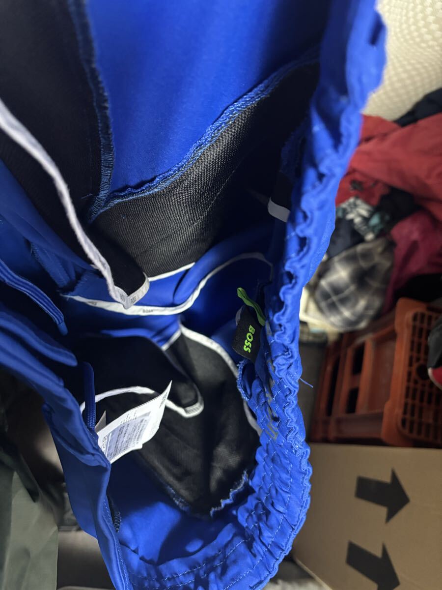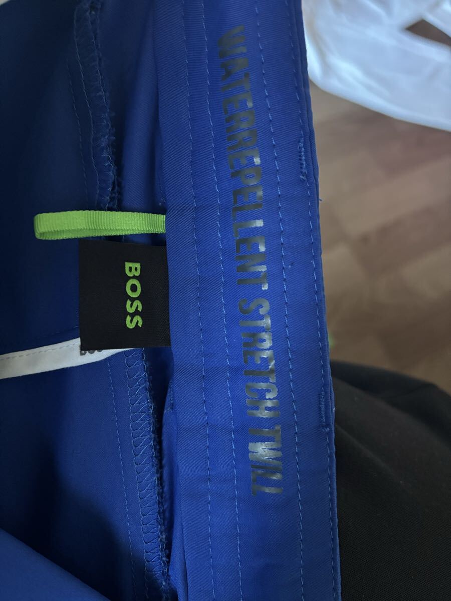ヒューゴボスのWATERREPELLENT STRETCH TWILL 春物パンツです。サイズ54表記で平置きウエスト後ろゴム47〜53股下77裾幅19全長101センチ位です。
