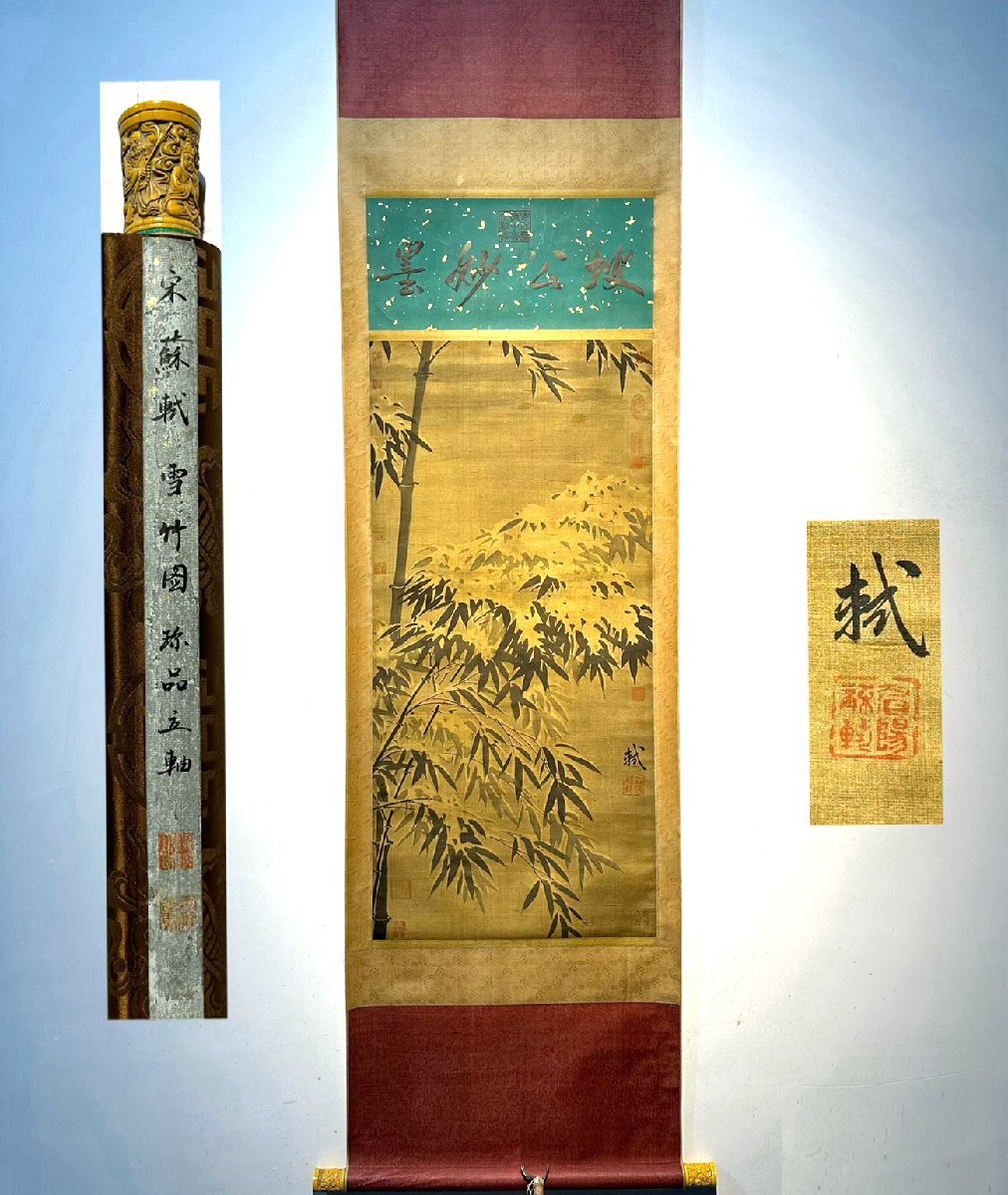 ■大成美術■【蘇軾書 絹本 雪竹図】(検)北宋時代書画家 中国画 墨寶妙品 中国書道 掛け軸 古美術 骨董 369