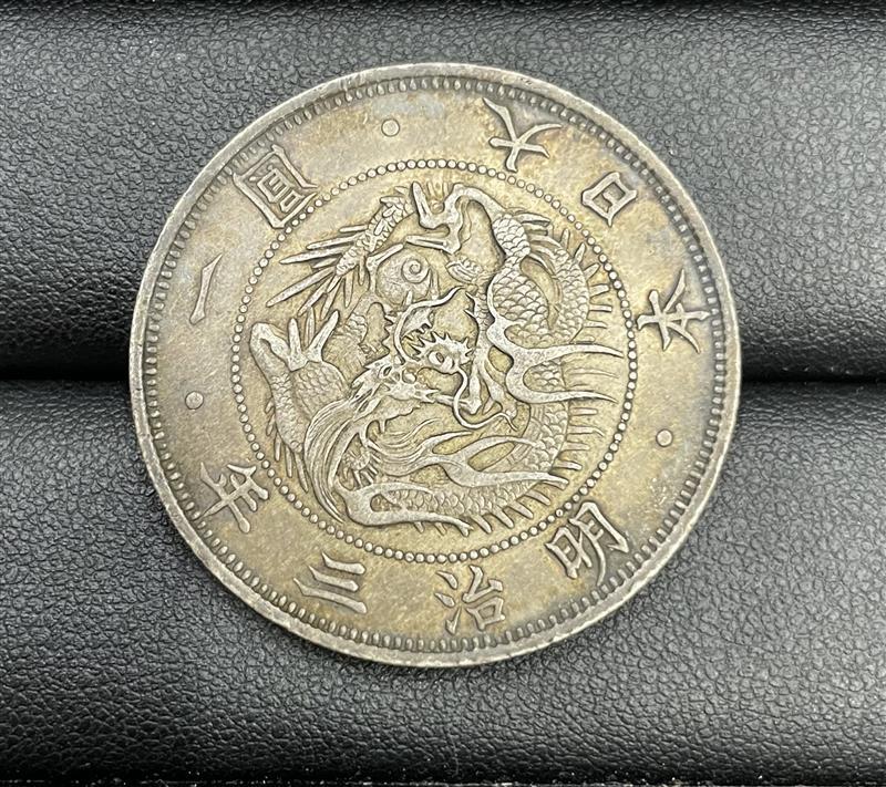 | #10925 一圓銀貨 明治3年 27.0g 龍/菊花紋章/レトロ/コレクション/古銭 | ||