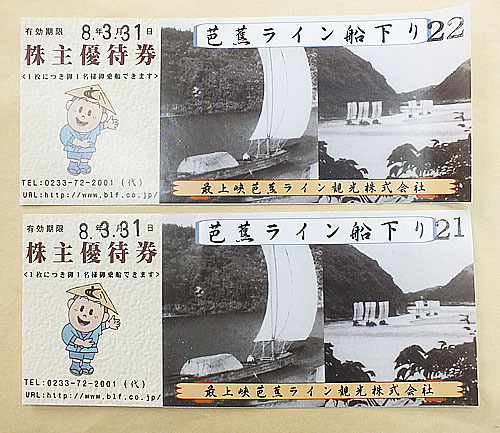 最上峡芭蕉ライン舟下り 株主優待券 です。 雪見船、こたつ船 最上峡芭蕉ライン舟下り優待券 (片道) 2枚 になります。 有効期限 令和8年3月31日 写真の2枚セットです。 片道券、古口港(戸沢藩船番所) → 草薙港(川の駅・最上峡くさなぎ)まで。 【 約12Km 1時間程 】 最上峡芭蕉ラインのホームページ https://www.blf.co.jp/ をご覧下さい。 発送出来ない日も御座いますので必ず自己紹介欄をご覧下さい。 | |