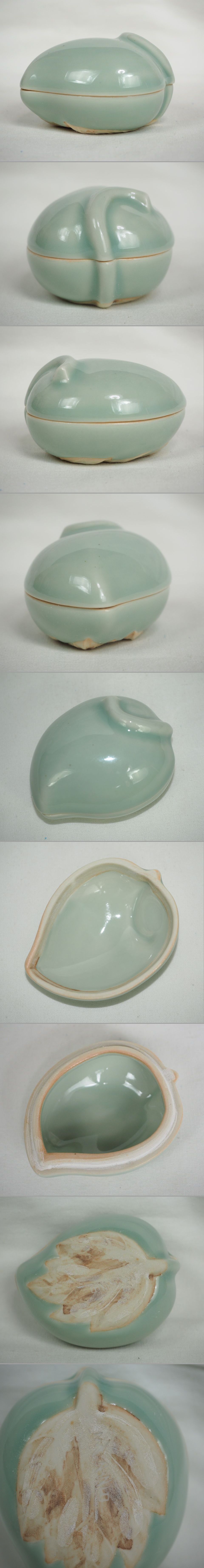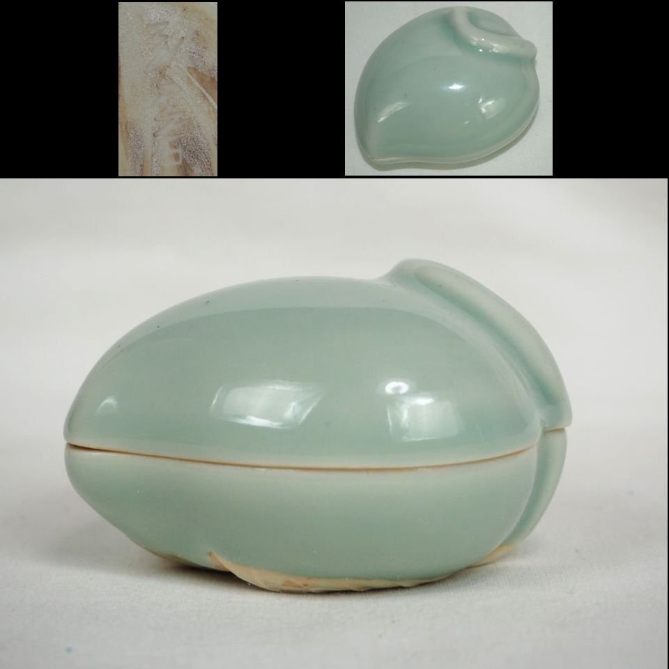 | 商品説明 | 高さ約 4cm 幅約 7×5.5cm ご覧のように、とても綺麗な桃形青磁香合です。出来栄えが見事、作家物ならではの上品さがあります。状態はとてもよい、完品無傷です、詳しくは写真でご確認ください。 |