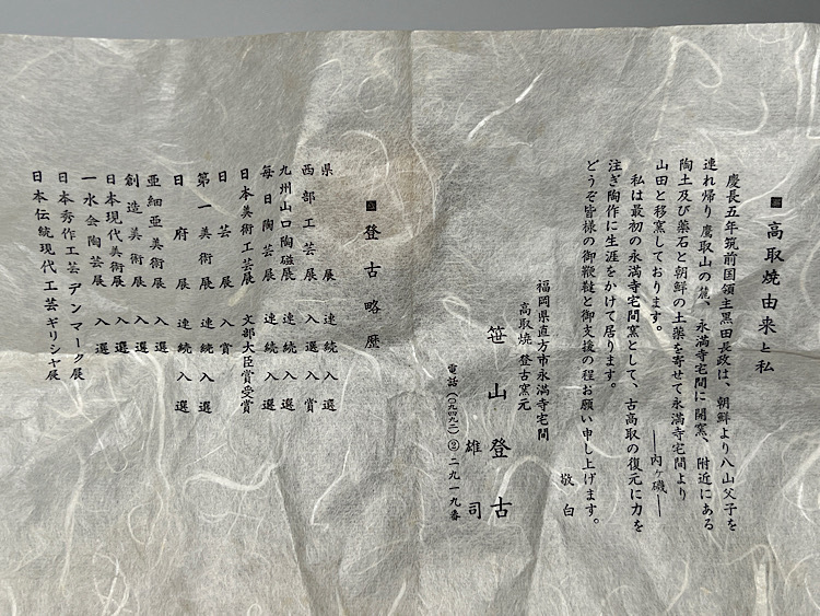 笹山登古作 高取焼 茶碗 共箱 共布 栞 ◆商品詳細 寸法(約):8x12.2x11.6(高×幅×口径cm) ※寸法に若干の誤差が生じる場合もございます。 少し汚れがありますので、 ご承知の上入札お願いします。 状態等画像にてご確認の上ご入札よろしくお願いいたします。 ◆発送先等のご連絡とお支払いについて ※発送先等のご連絡 落札時から48時間以内にお願い致します。 ※お支払 かんたん決済の期限内にお願い致します。 複数点落札時にまとめて取引の場合(72時間内)に、 まとめて取引の取引手順(落札者方の操作)を参考にお願い致します。 梱包したサイズを測って、地方によって送料を決めますので、よろしくお願いします。 ◆掲載画像について ※画像は現物を撮影しておりますが、照度、遮光、モニターによっては実物と 色目が異なって見えることがありますのでご注意ください。掲載画像では確認 できない傷や汚れがある可能性もございます、あくまで 中古品であるということをご承知の上、御入札をお願い致します。 ◆補償について 商品到着後はすぐに状態の確認をお願い致します。 商品の破損等がございまし たら、箱や梱包材など全てそのままの状態で保存し、お早めにご連絡ください。 (到着日から一週間以上経過、梱包材の廃棄済み等の場合、保証は致しかねます のでご注意ください。) ◆返品について 思っていたイメージと違う、などのお客様主観による返品はお受けできません ので、予めご了承ください。ノークレーム、ノーリターンでお願いします。届 いた商品が商品説明と著しく異なる場合(寸法、キズ記載ミスなど)のみ承り ます。早めにご連絡ください。 ◆注意事項 当方の希望価格と隔たりがある場合は、終了前にやむなく取下げさせて頂く場 合がございます。 ※商品ご落札翌日から4日間以内にご連絡が取れない場合は、入札取消の処置を 取らさせていただく場合がございます。 ※評価の悪い方は取り消す場合がございます。 ※原則として当方の不備以外のキャンセル・返品・返金は受け付けておりません。 以上の点を予めご了承頂いた上で、入札・落札お願い致します。 ◆発送方法 ▼ゆうパック(補償あり/追跡あり) 梱包後のサイズ:~約60cm ※送料全国一律880円 (但し北海道、沖縄、離島は+500円いただきます。) 発送元は静岡県となります。 ( 商品の組み合わせによっては同梱をお断りさせていただく場合があります。) ※大型商品について 郵便局の規定を超える商品の場合は、佐川急便またはヤマトでの発送となります。 |